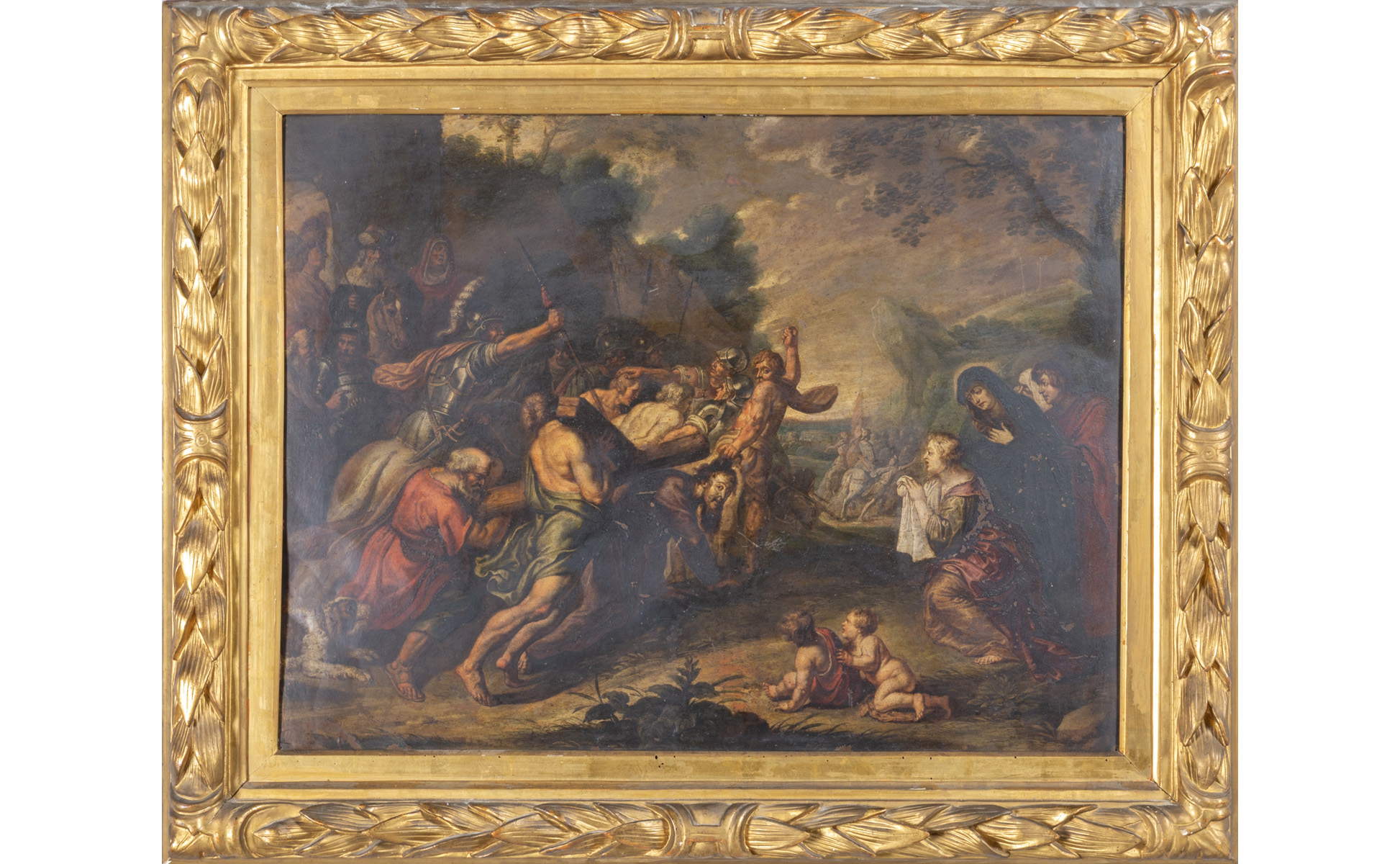 Scuola fiamminga sec.XVII "Scena religiosa" olio