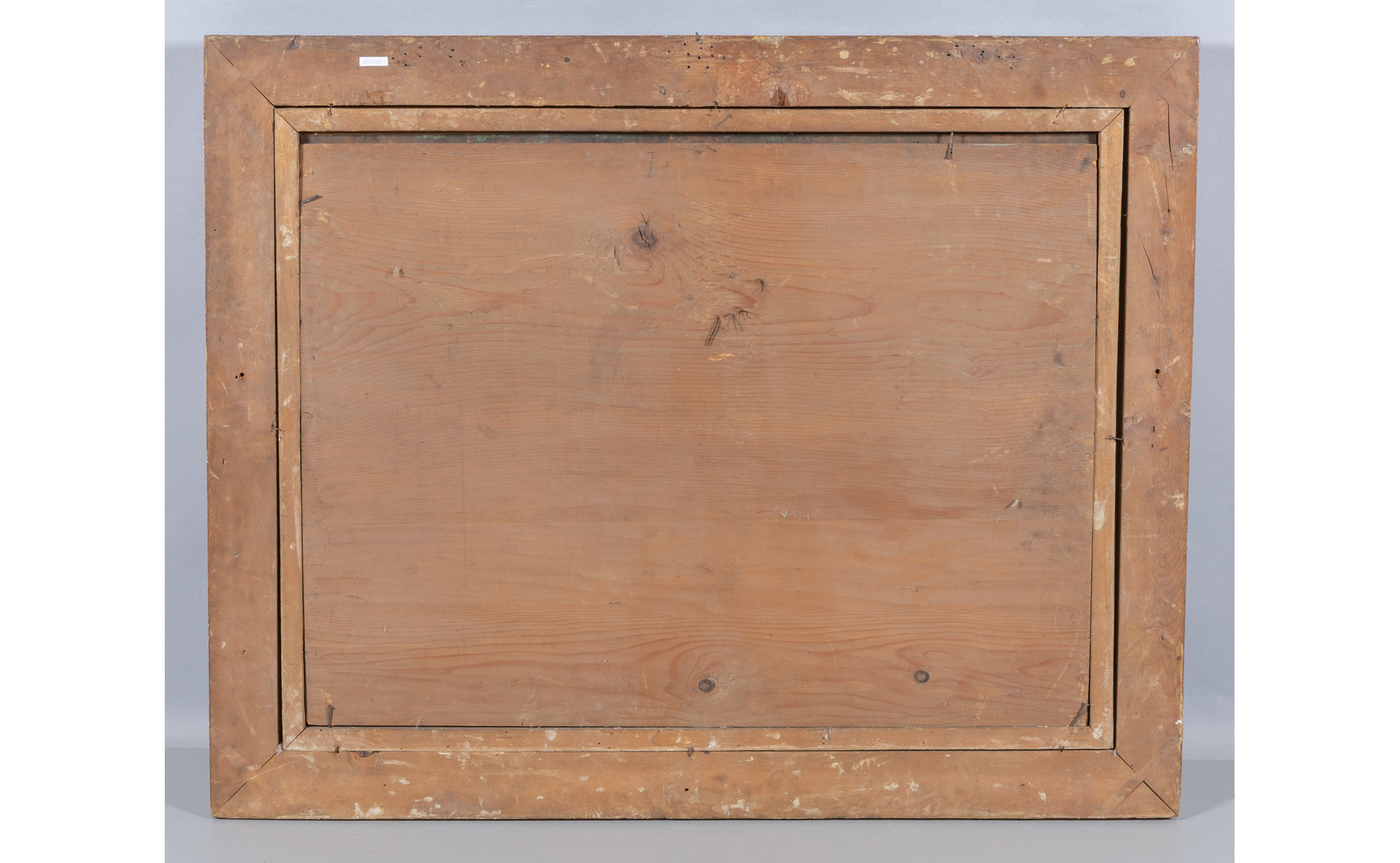 Scuola fiamminga sec.XVII "Scena religiosa" olio su rame, cornice in legno intagliato e dorato