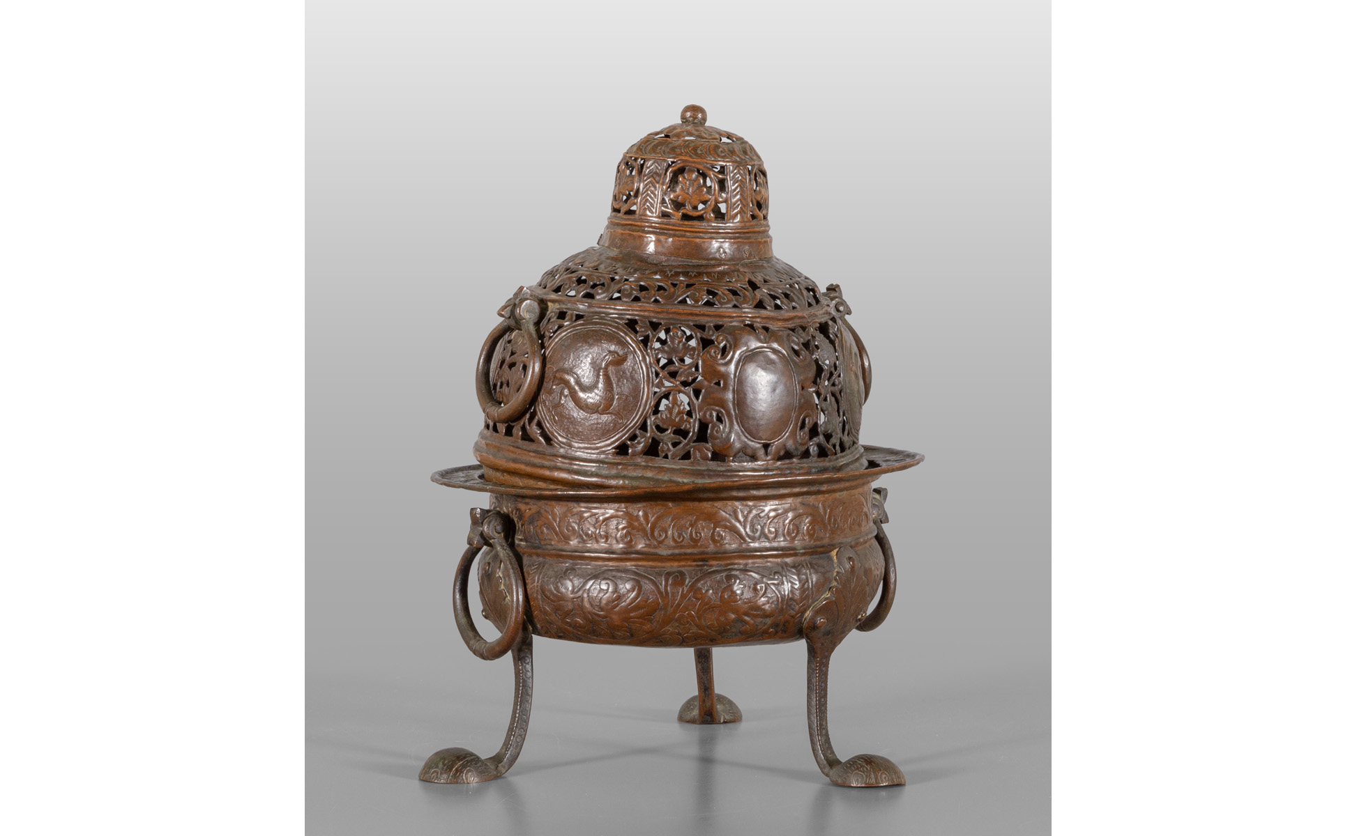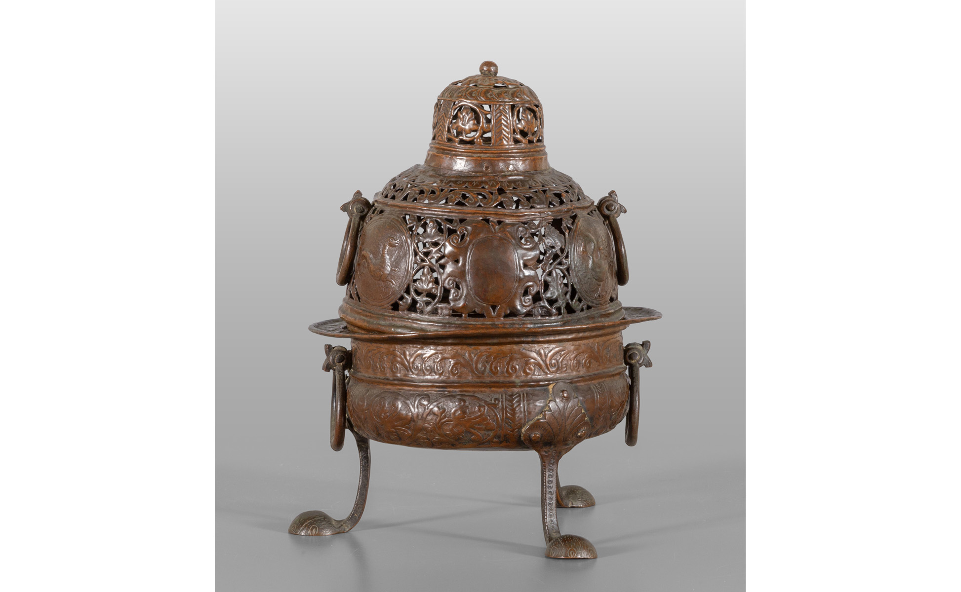 Bruciaprofuno in rame finemente sbalzato e traforato, Veneto sec.XVIII