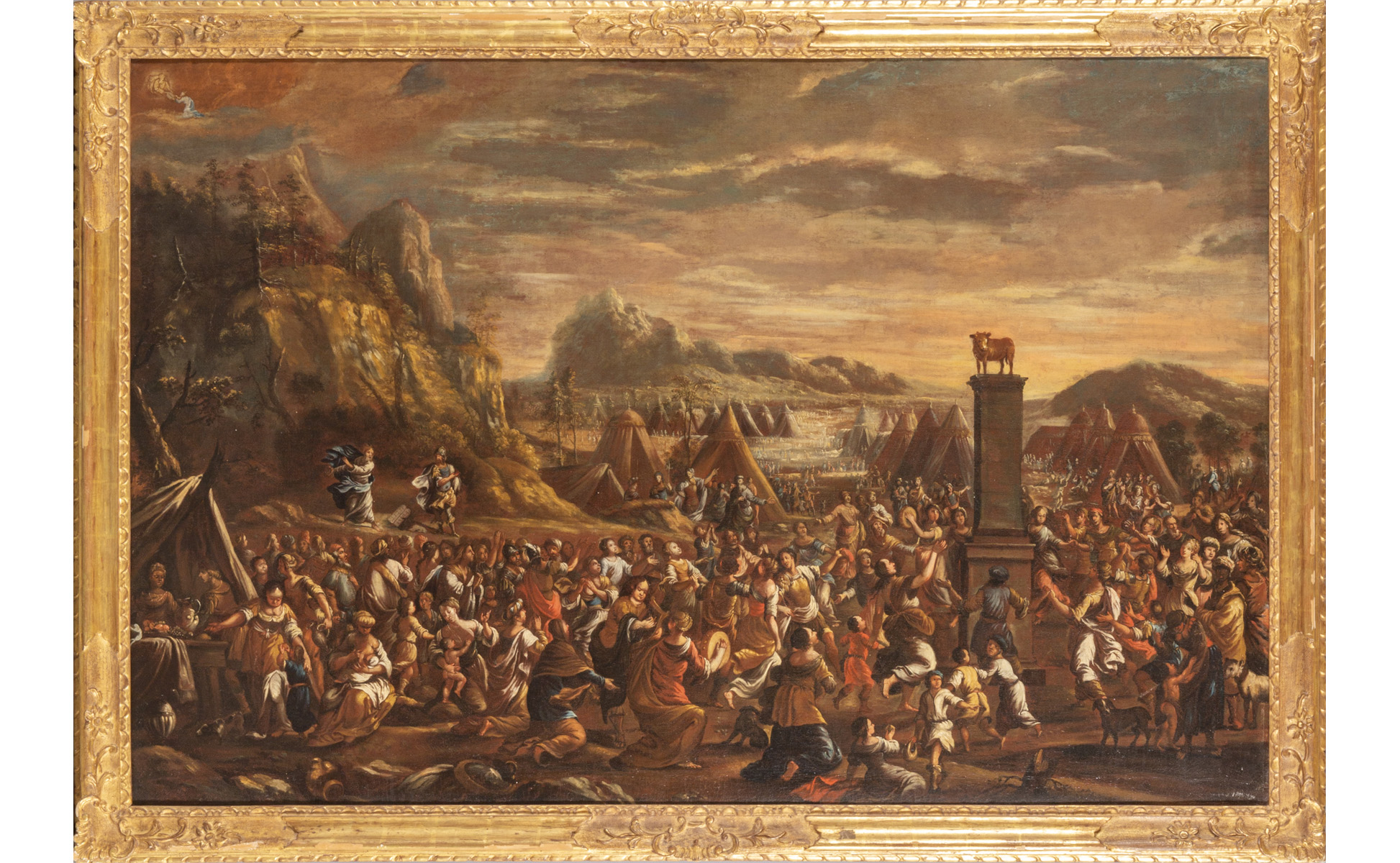 Scuola napoletana sec.XVIII (Scipione Compagno) "Adorazione del vitello d'oro" olio