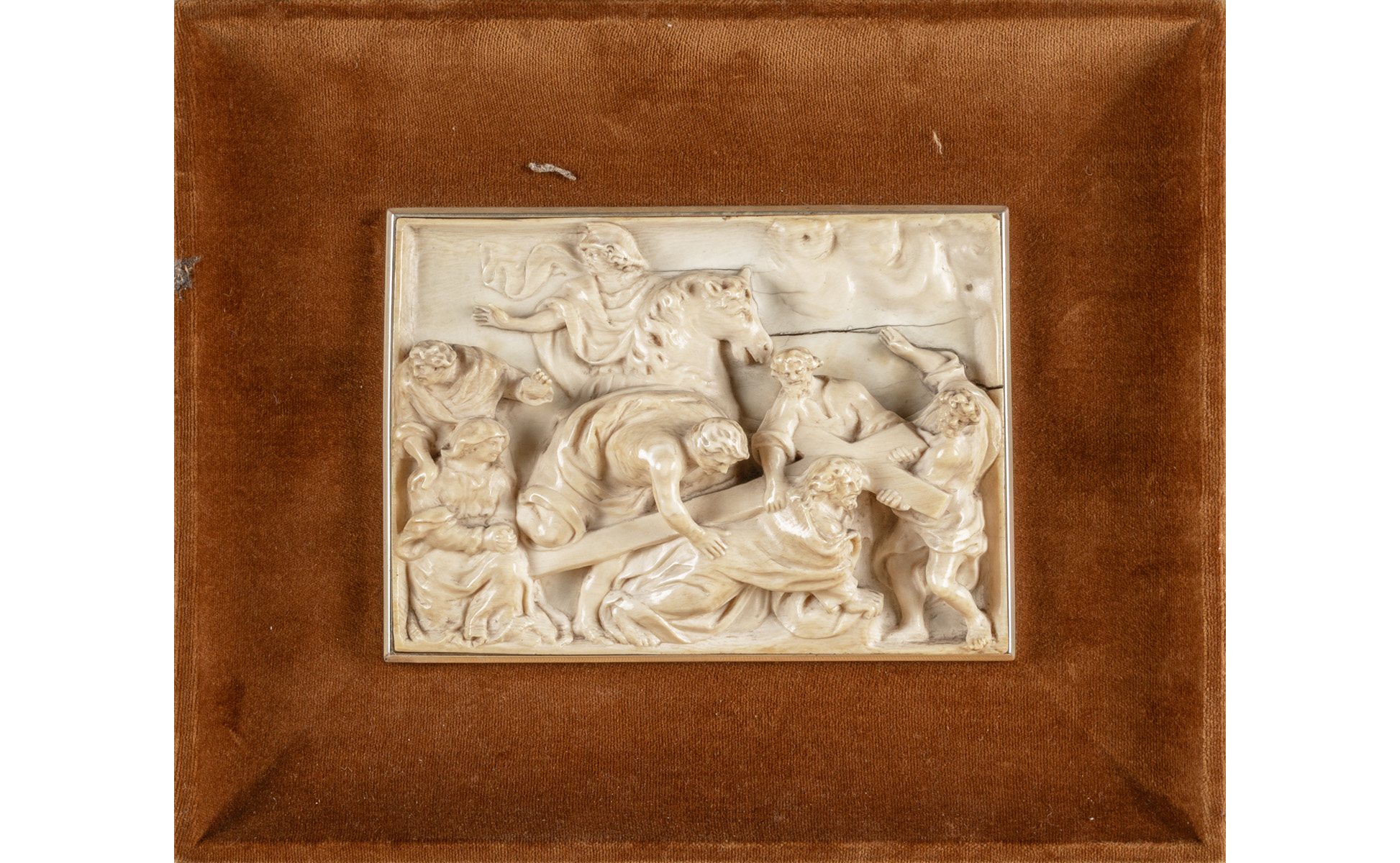 La caduta di Cristo con la Croce, placca in avorio scolpito, sec.XVII