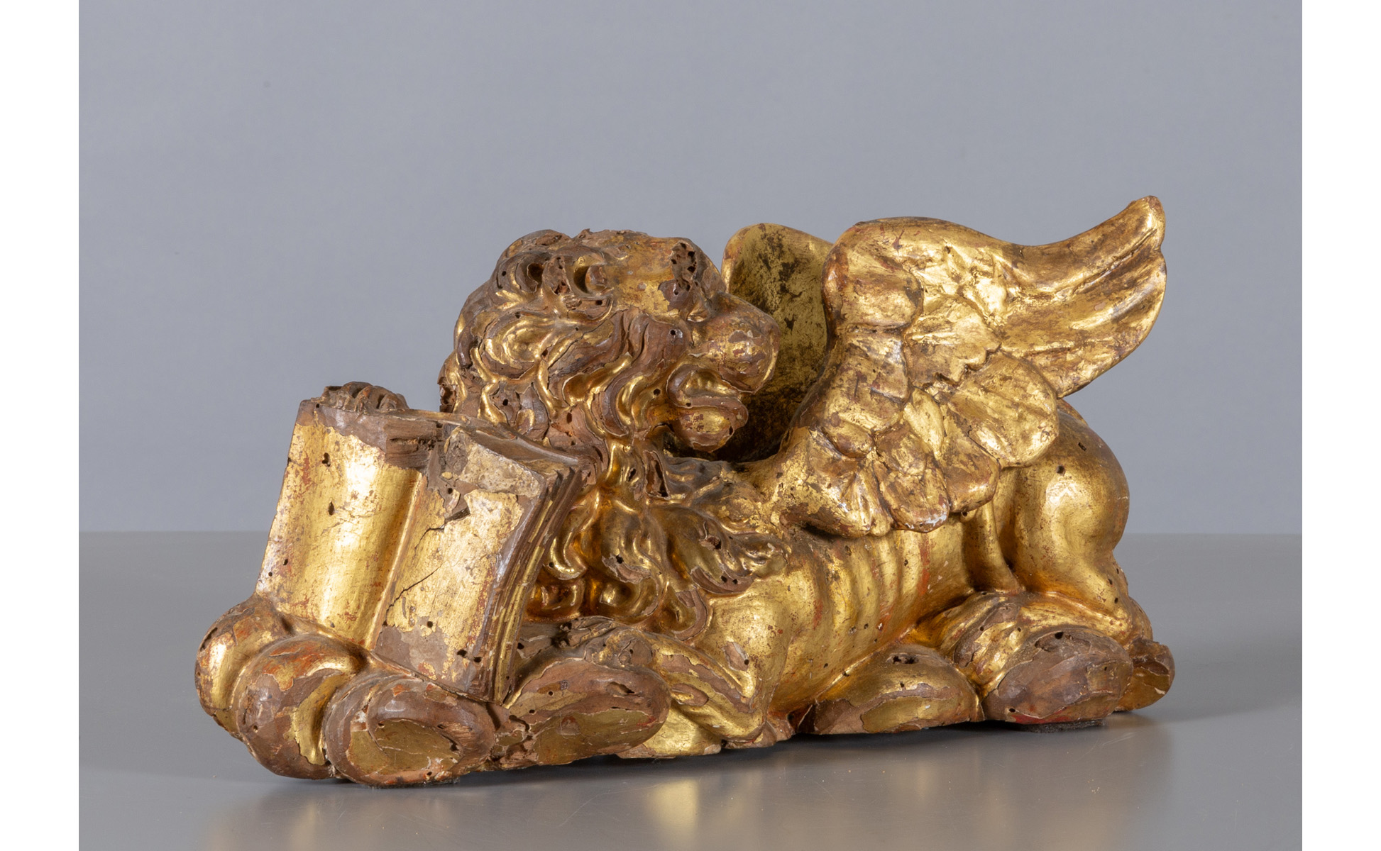 Leone, scultura in legno intagliato e dorato, Venezia sec.XVII
