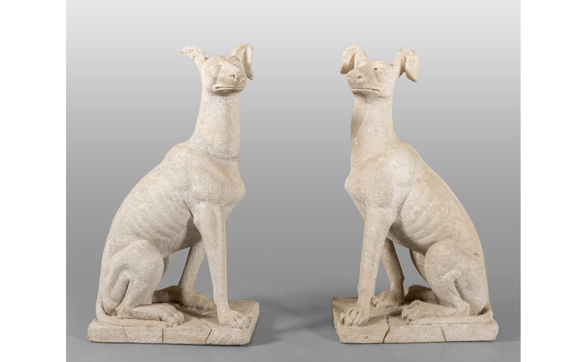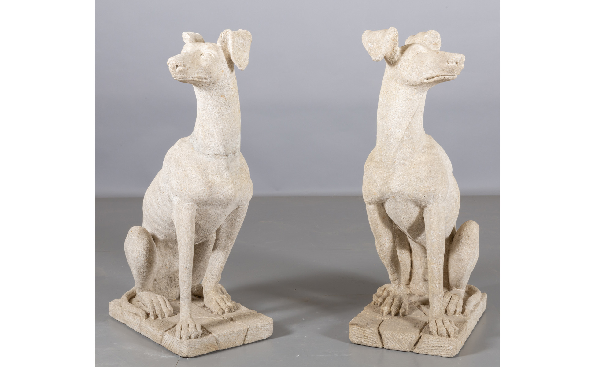 Lot 0178 | Coppia di cani in pietra di Vicenza<br>h.cm.85,