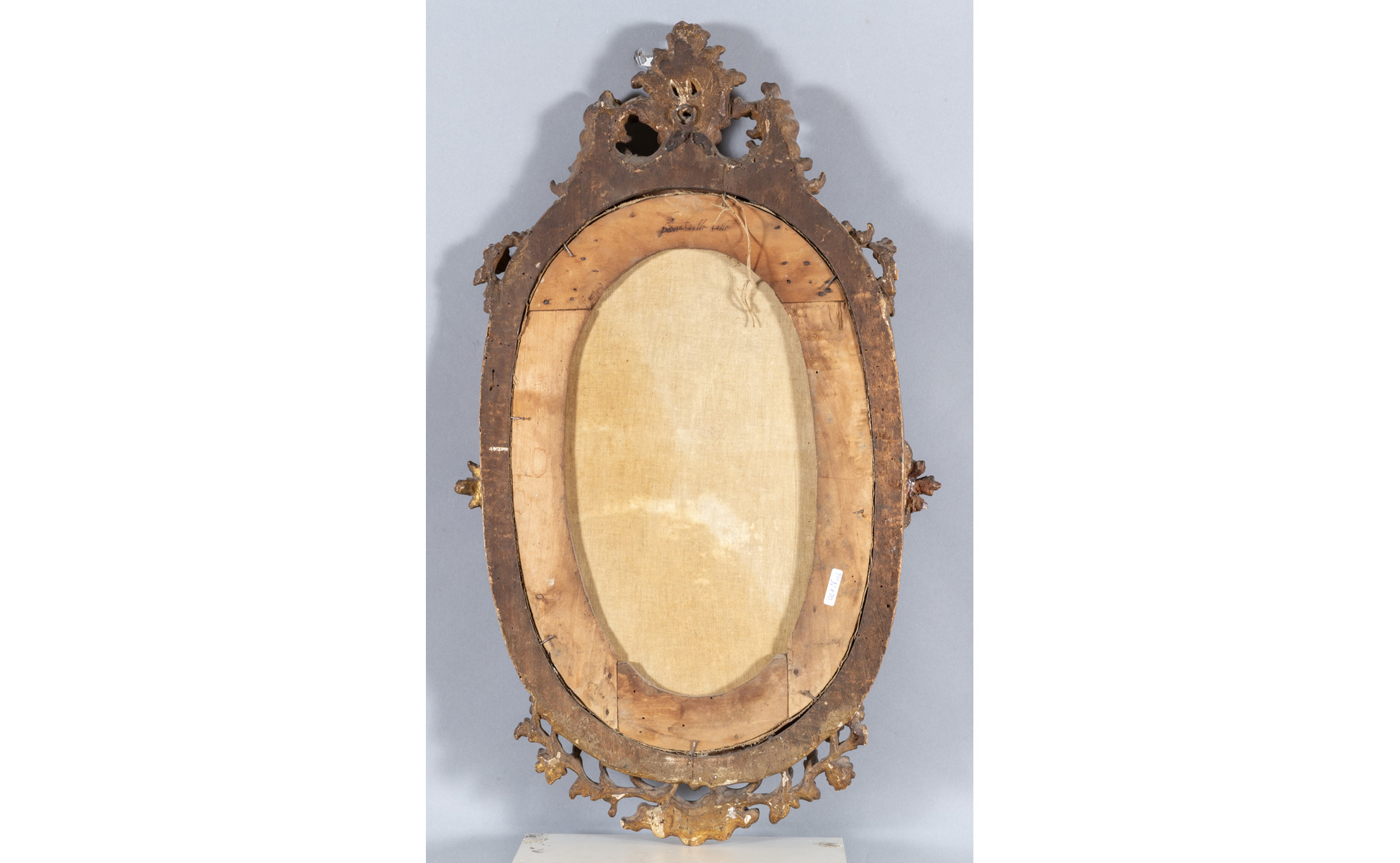 Scuola piemontese sec.XVIII "Educazione della Vergine" e "Sacra Famiglia" coppia di olii di forma ovale, belle cornici in legno intagliato e dorato