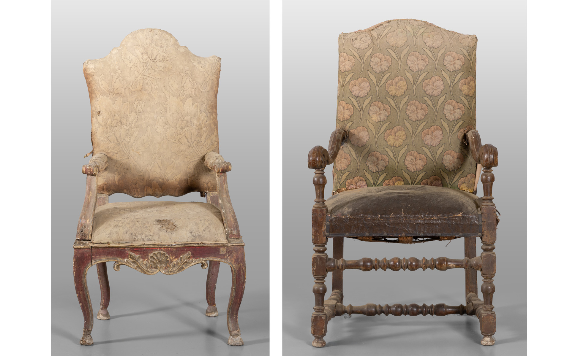 Lot 0194 | Due poltrone con braccioli in noce, sec.XVIII