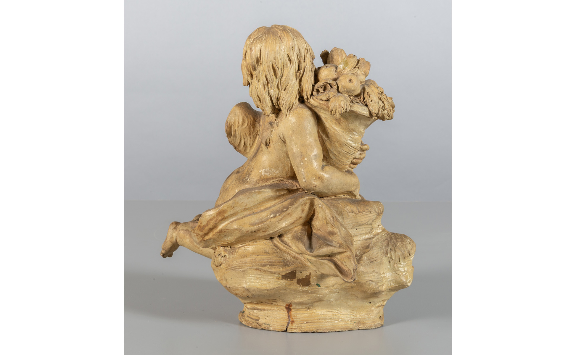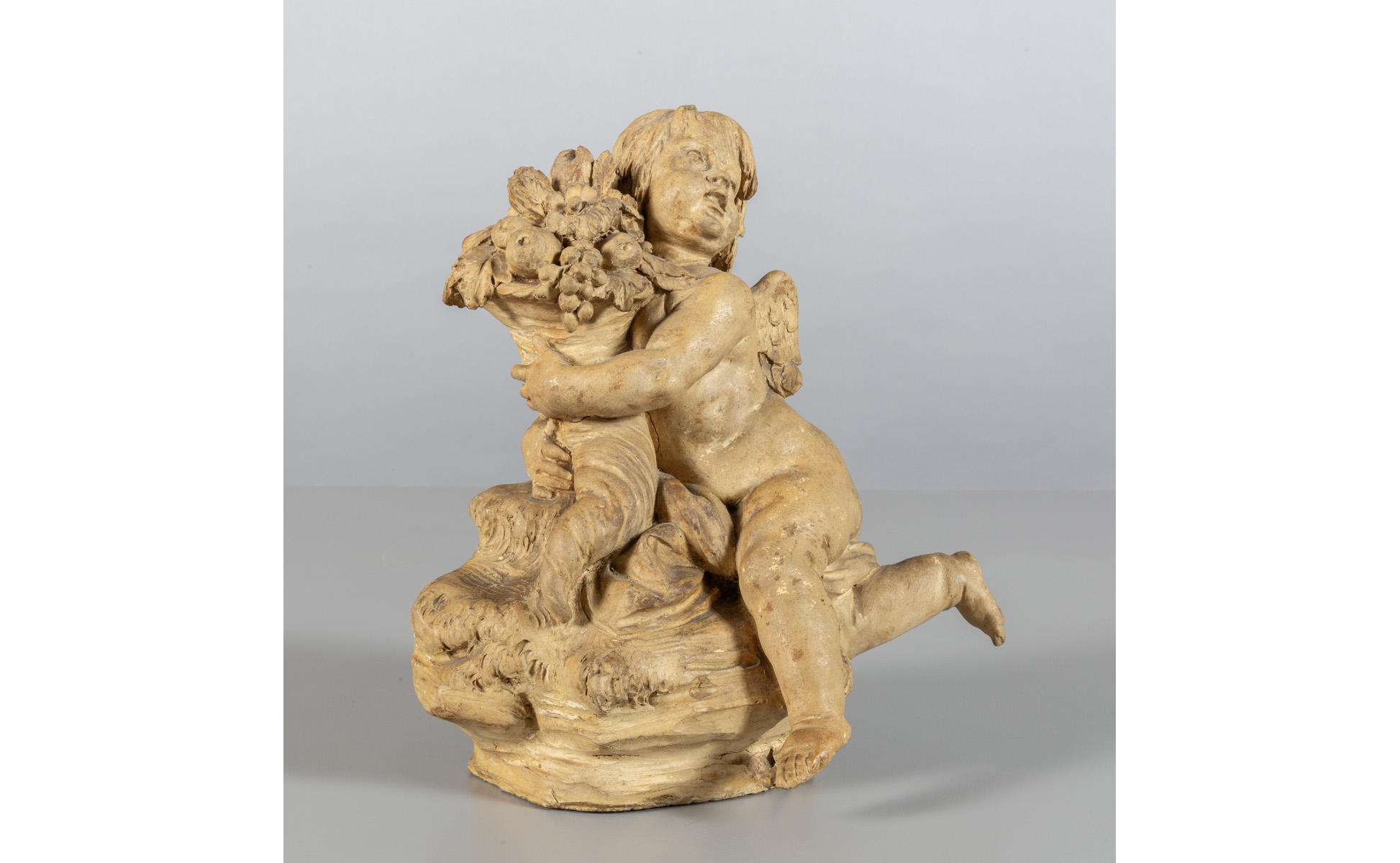 Putto con cornucopia, scultura in terracotta