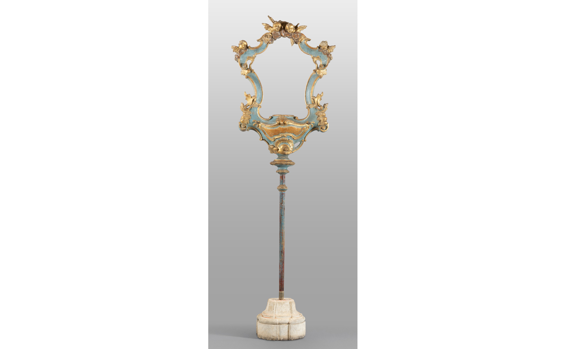 Tabernacolo processionale in legno intagliato, laccato e dorato, base coeva in marmo, Roma sec.XVII