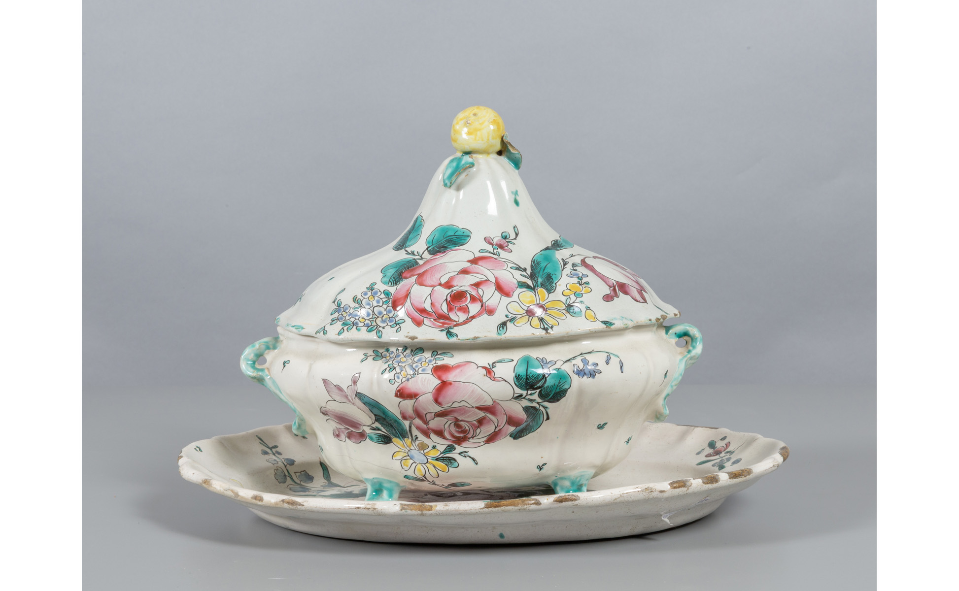 Lot 0237 | Zuppiera con piatto in maiolica policroma