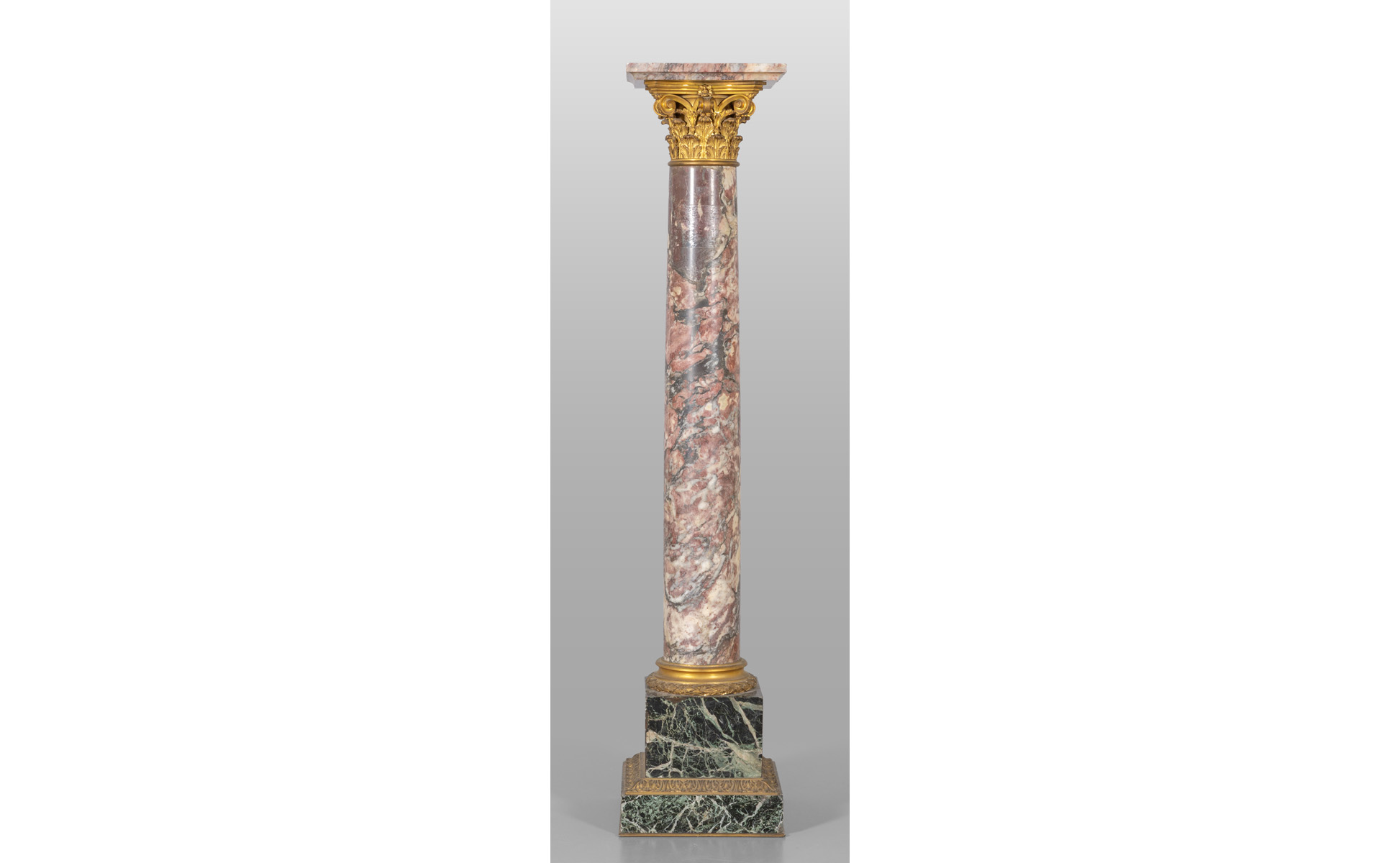 Colonna Napoleone III in breccia violacea con capitello e base in bronzo dorato, f.ta Millet à Paris