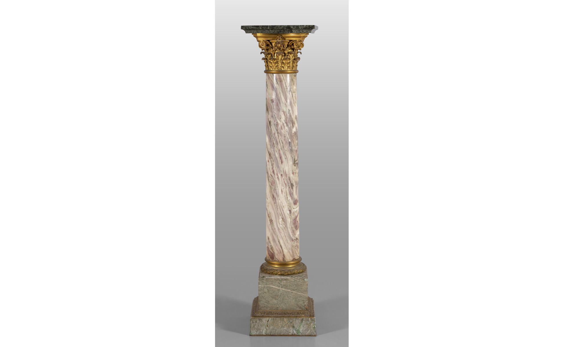 Colonna Napoleone III in breccia con capitello e base in bronzo dorato, f.ta Millet à Paris