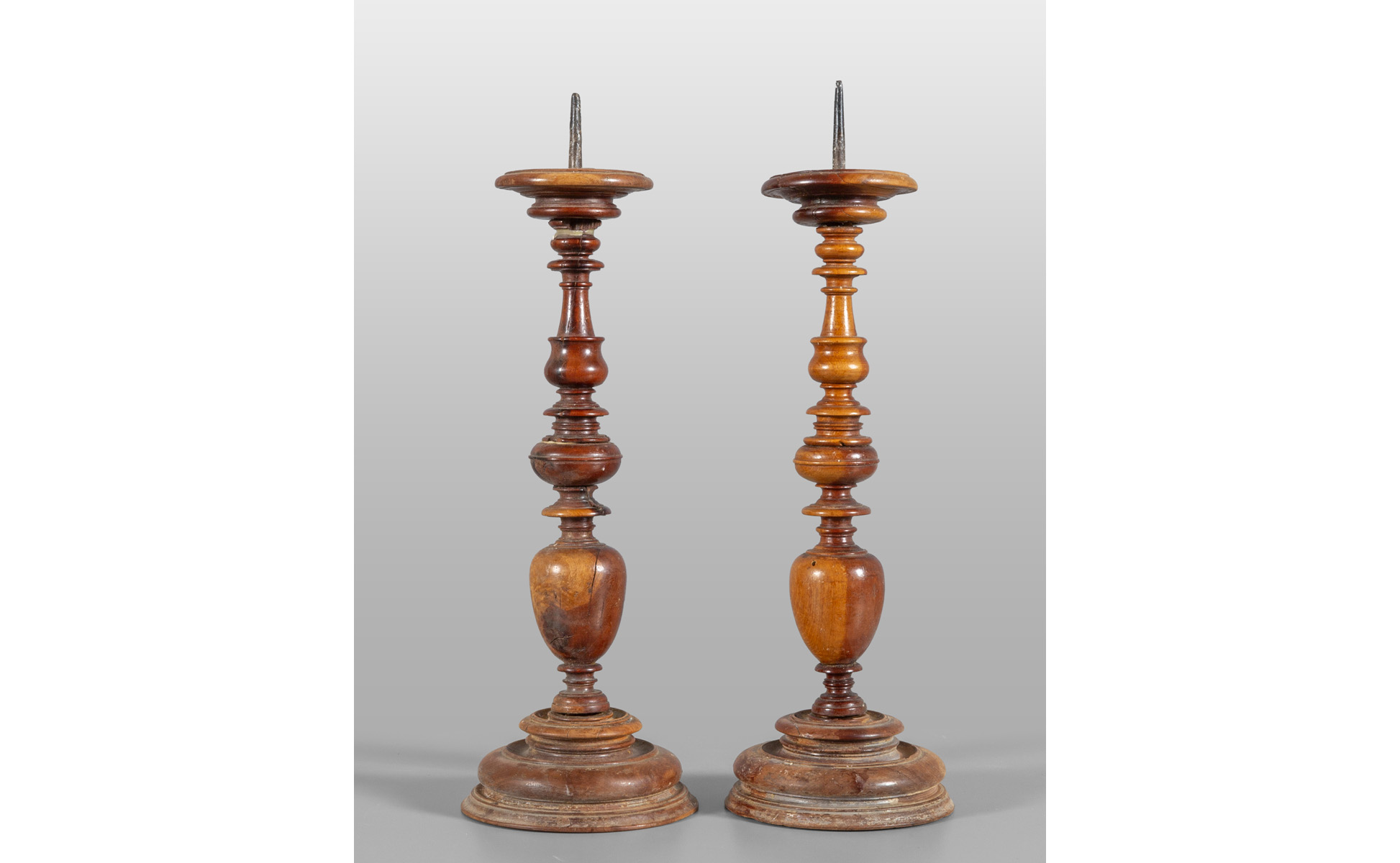 Lot 0258 | Coppia di candelieri in noce a rocchetto,