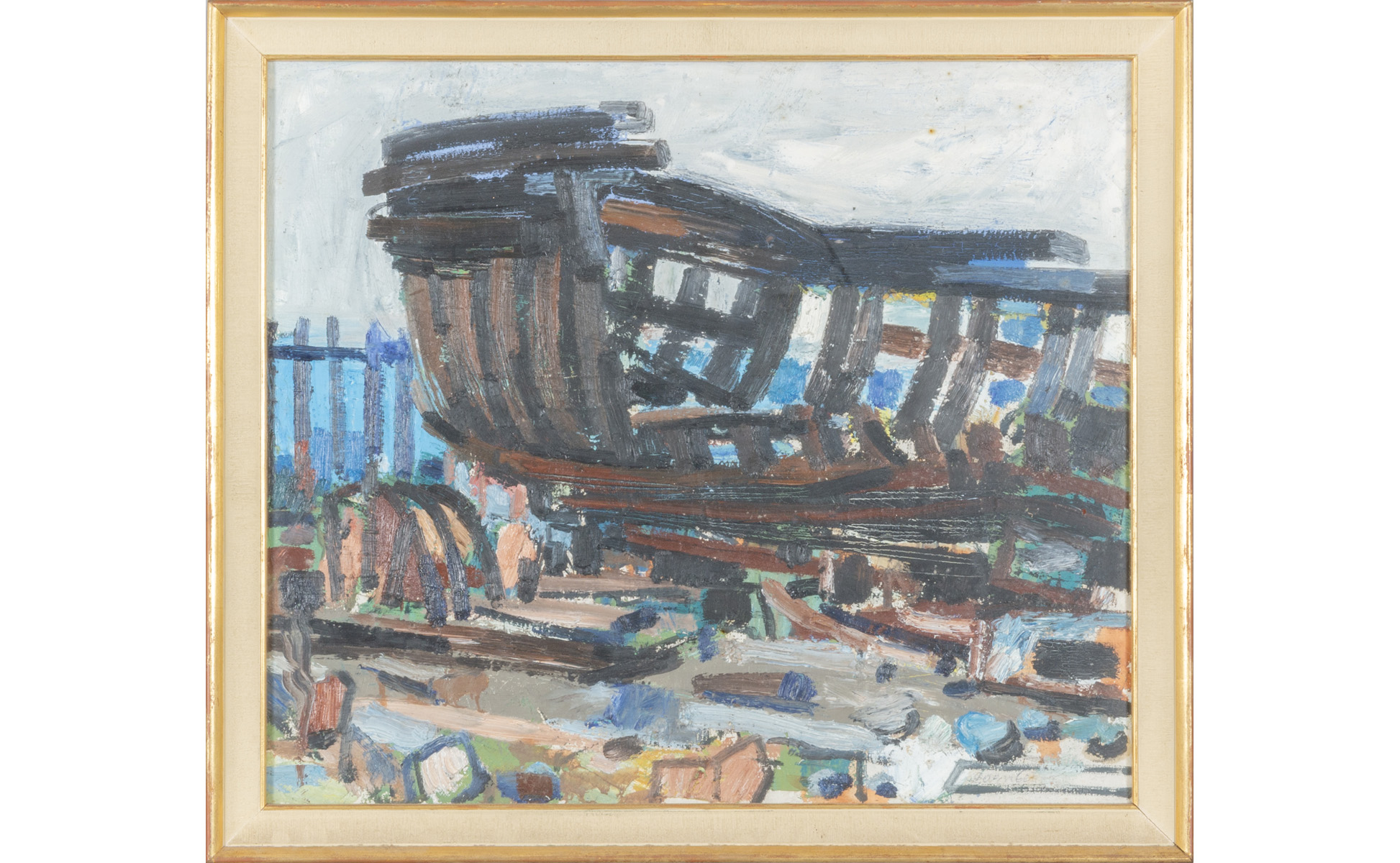 Cantiere navale<br>olio, cm.70x60<br>f.to in b. a