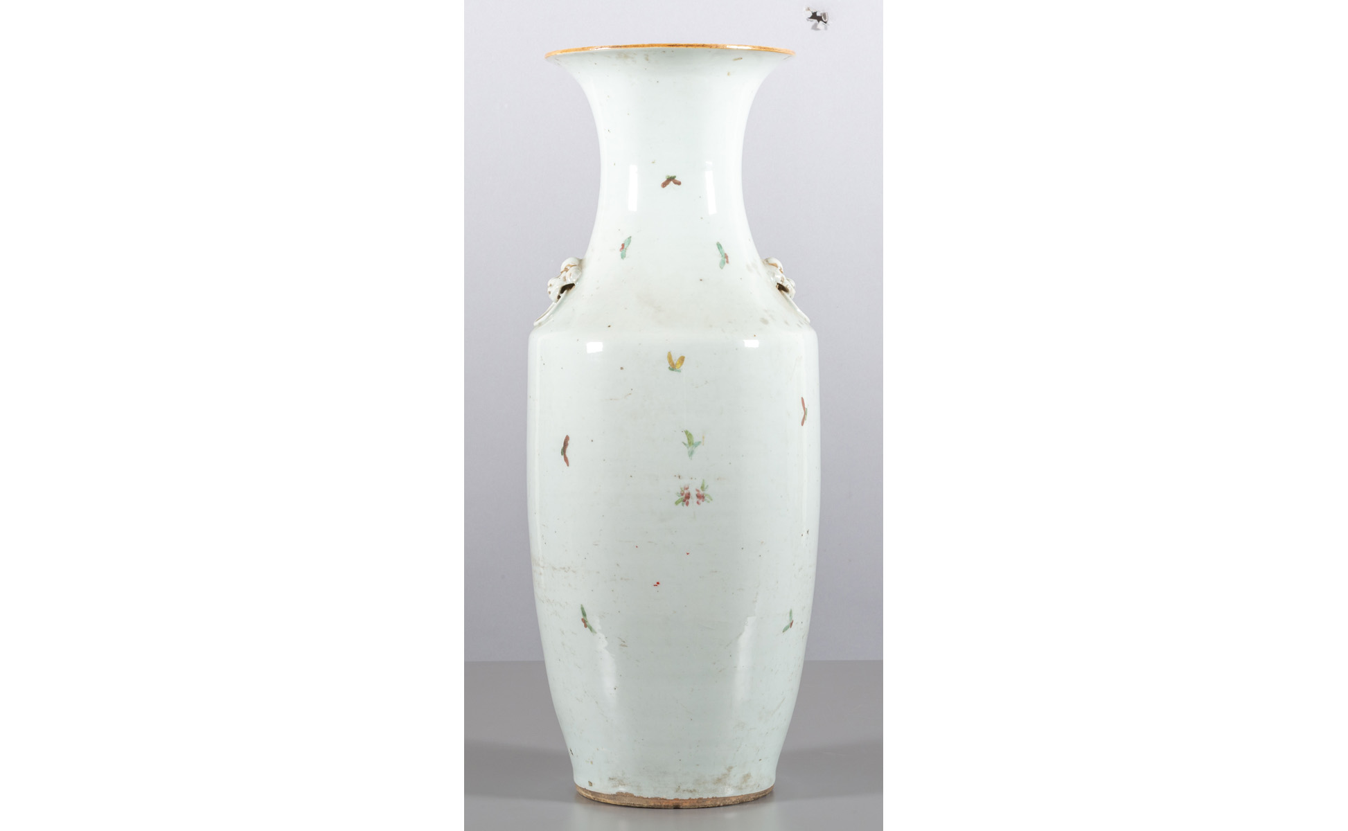 Vaso in porcellana policroma con rami fioriti e uccelli prese a forma di cani di Pho Cina sec.XX
