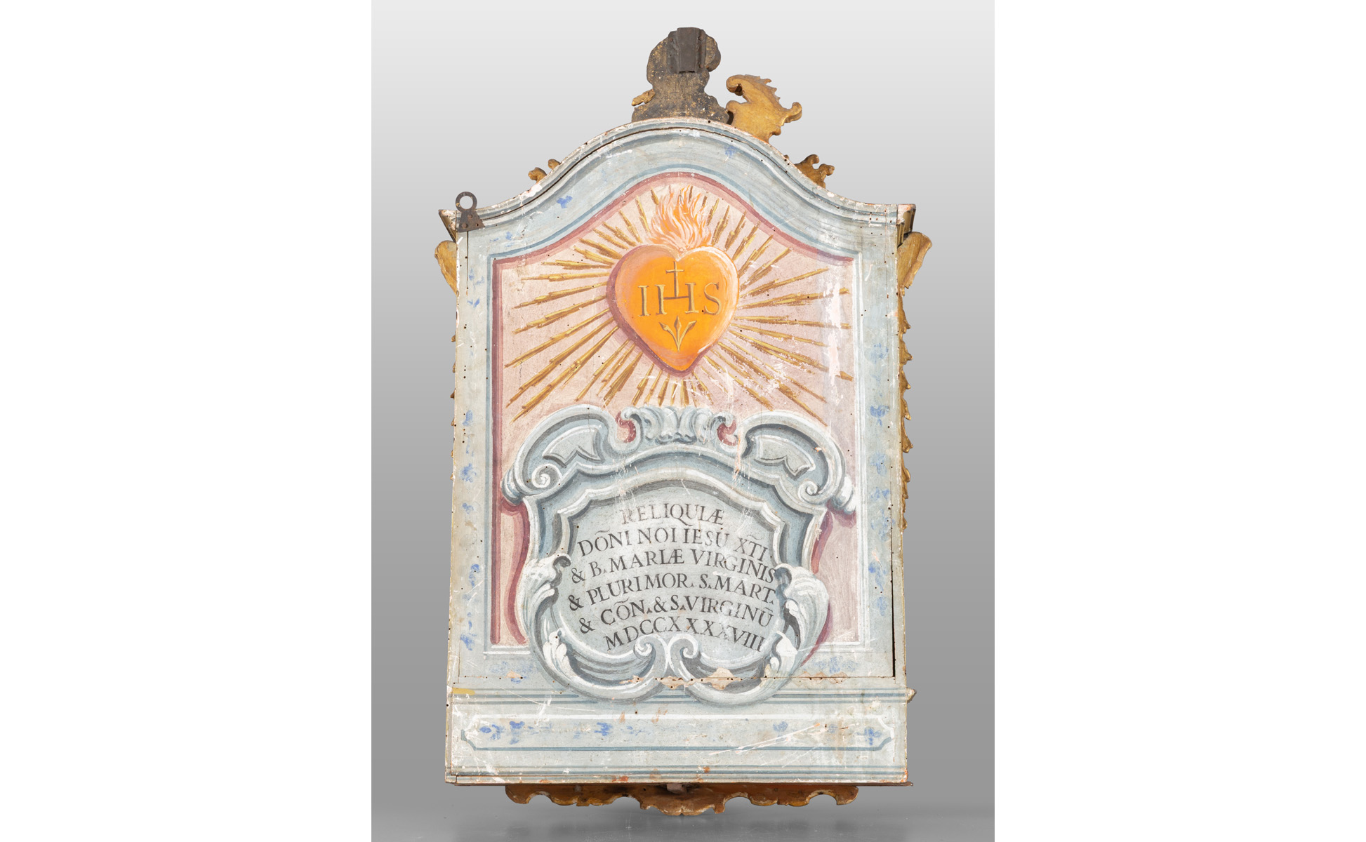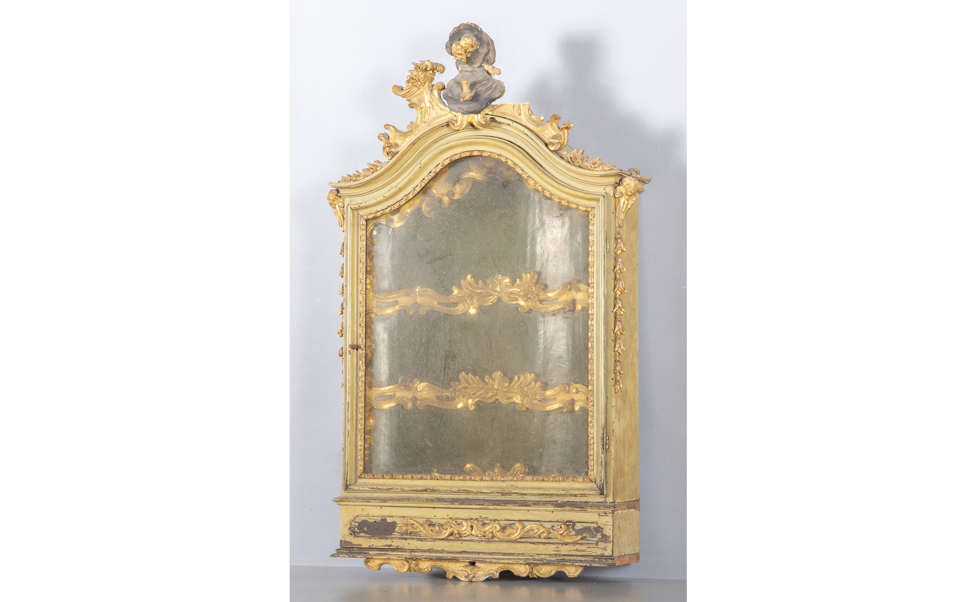 Teca in legno intagliato dorato e laccato sec.XVIII