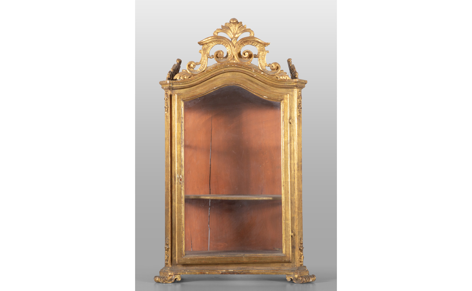 Previous Lot 0702 Next Aste Boetto - Via Mura dello Zerbino 10R, 16122 Genova Presale ASTA DI ANTIQUARIATO ASTA DI ANTIQUARIATO Tuesday 3 March 2026 hours 15:00 (UTC +01:00) OGGETTISTICA Starting price100.00 € Log in to bid Teca in legno intagliato e dorato sec.XIX cm. 55x34 h. 95 mancanze Buyer's Premium Le commissioni d'asta sono del 25% comprensive di IVA