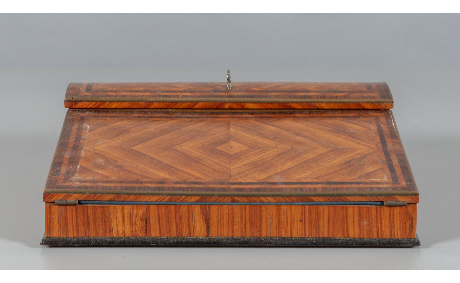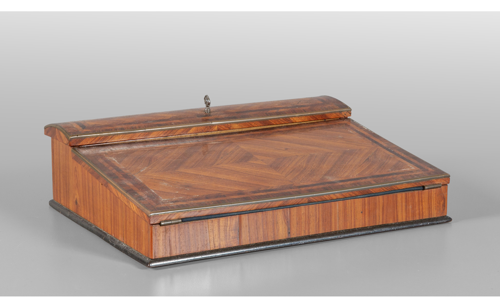 Scrittoio da viaggio lastronato in palissandro e legno di viola sec.XIX