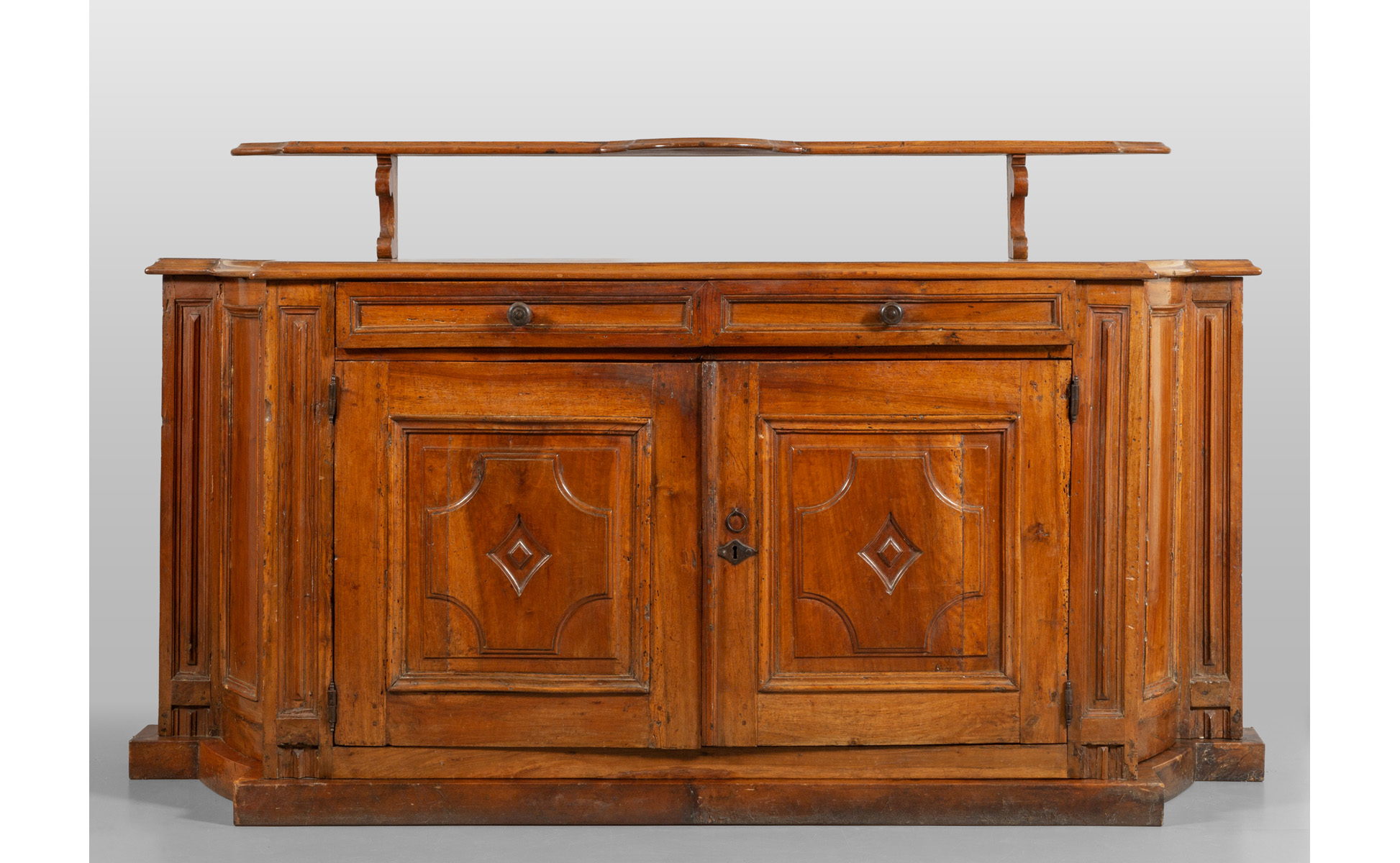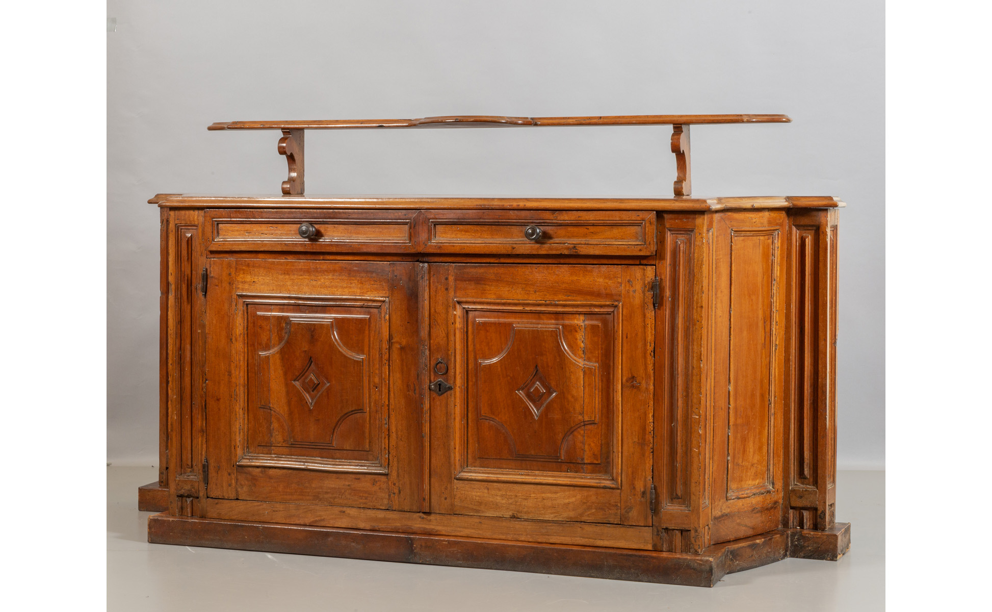 Credenza Luigi XIV in noce a due sportelli con cassetto sottopiano sec.XVIII