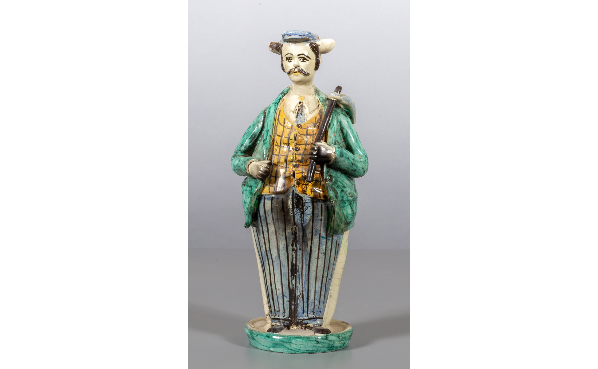 Lampada in maiolica policroma raffigurante contadino con zappa Italia Centrale sec.XIX