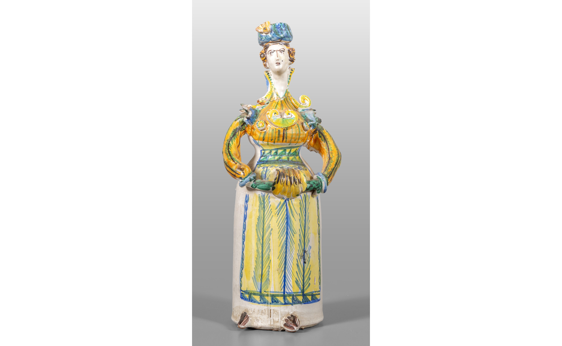 Lume in maiolica policroma raffigurante giovane donna Napoli sec.XIX