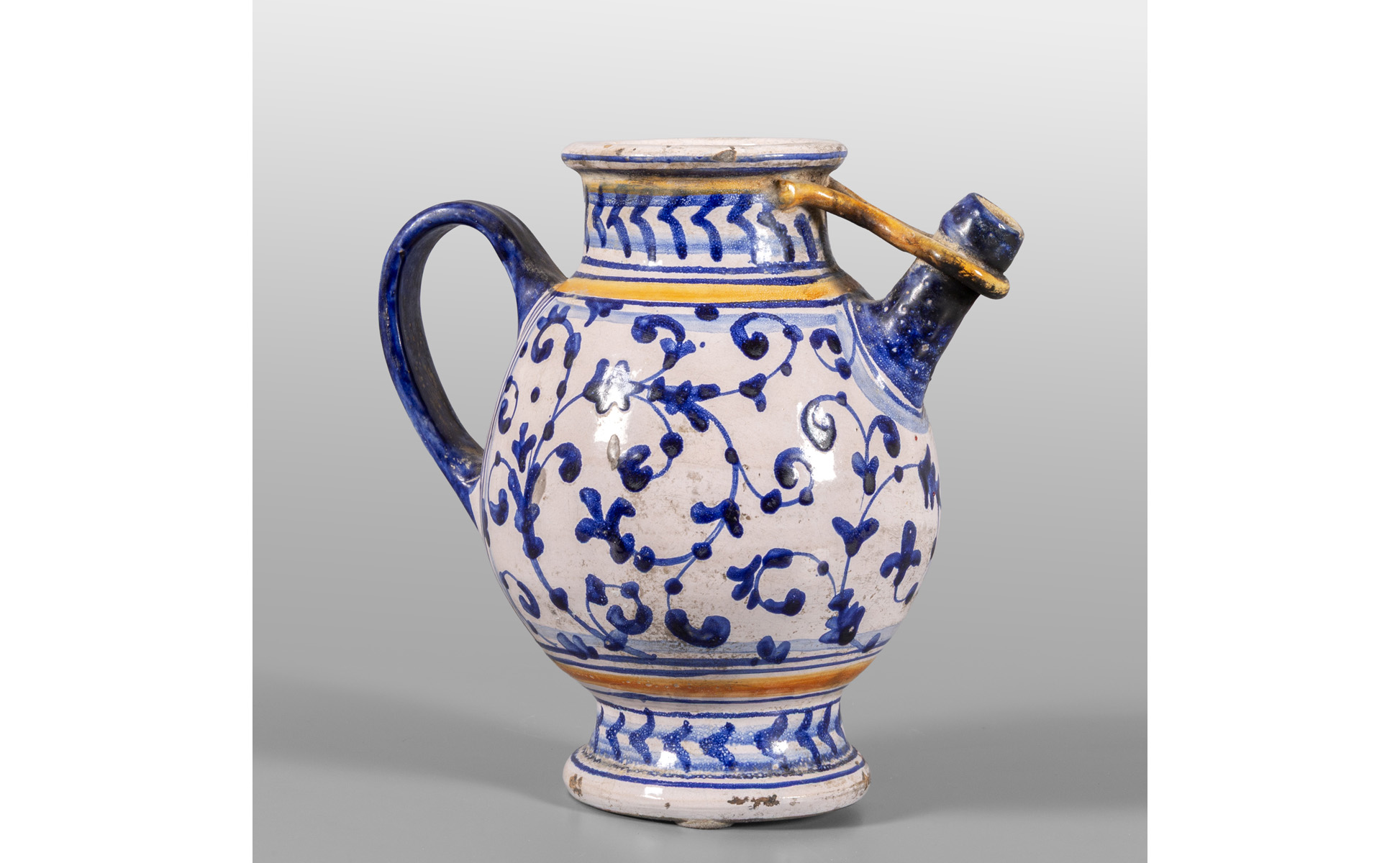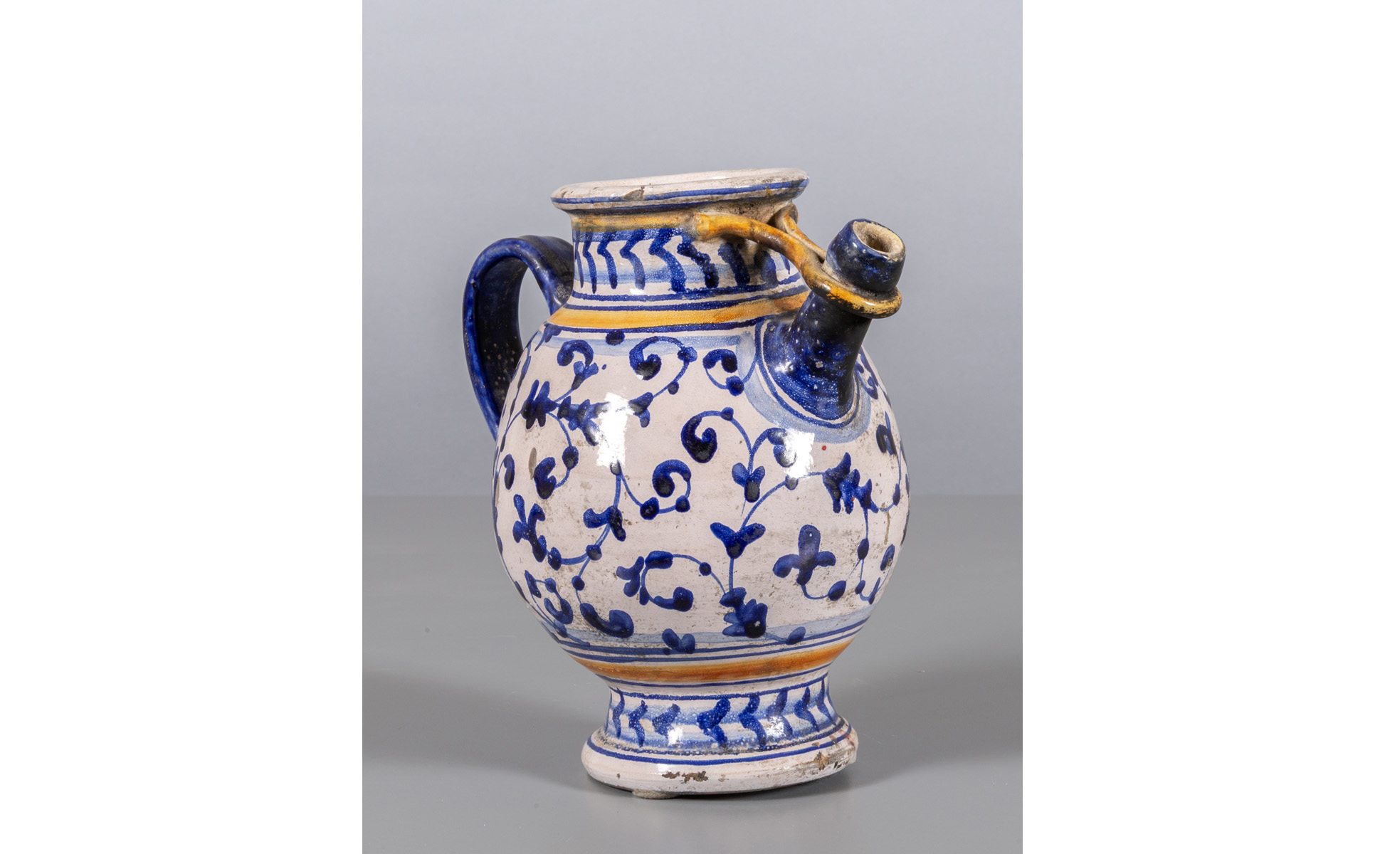 Boccale in maiolica policroma con decorazione a foglie Toscana sec.XIX
