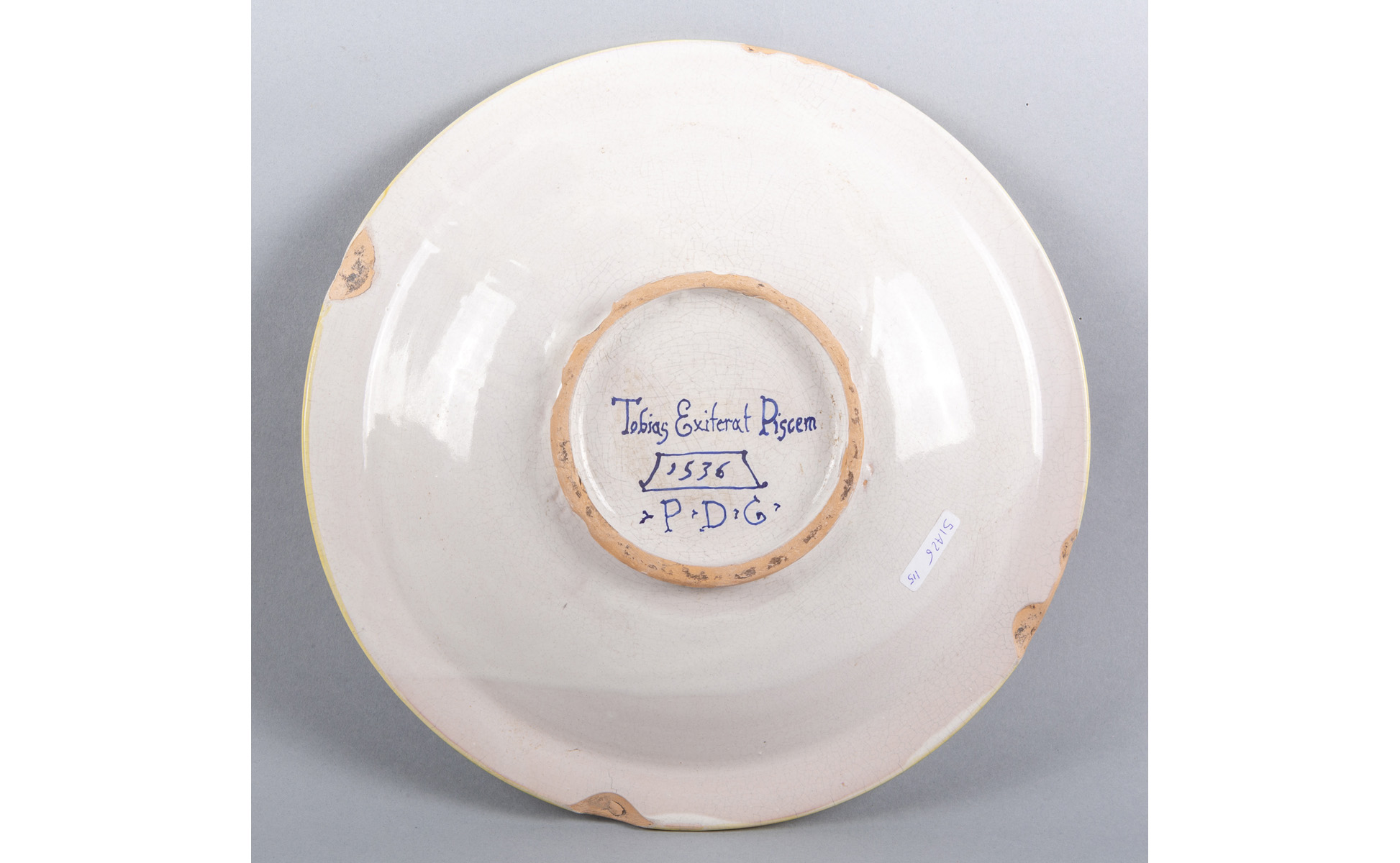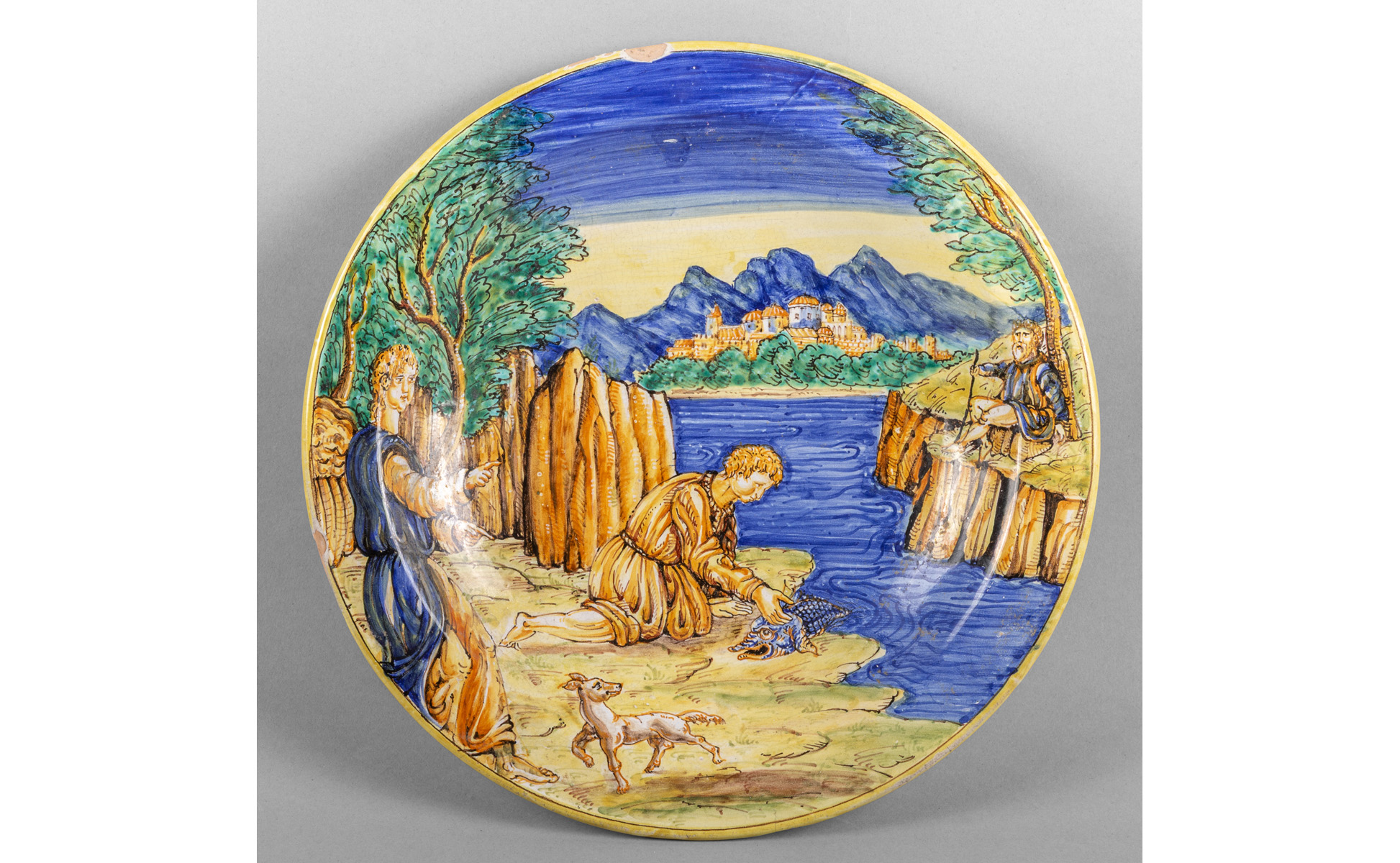 Piatto in maiolica policroma decorato con scena biblica sec.XIX