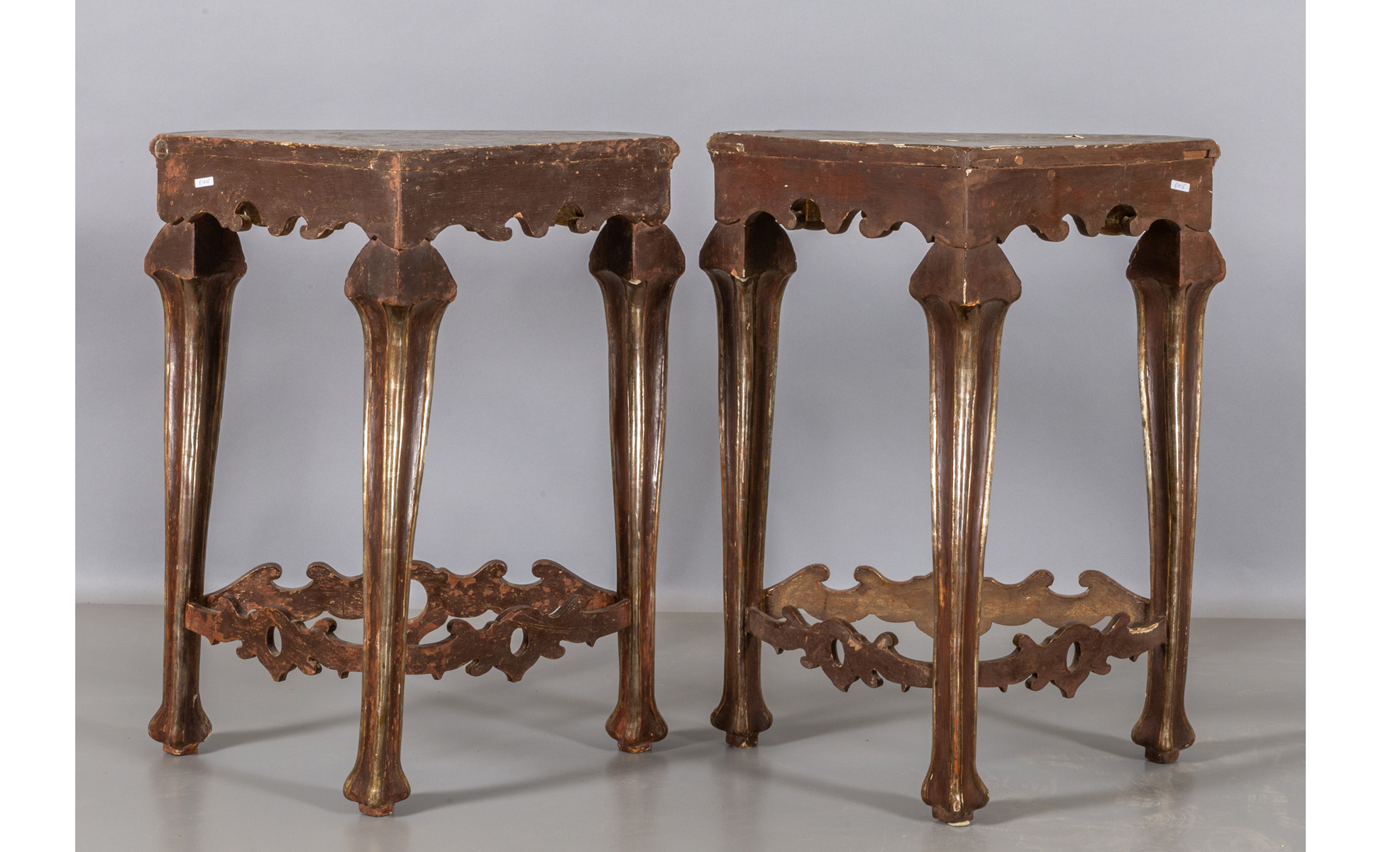 Coppia di consoles ad angolo in legno laccato con profili a mecca Italia Meridionale sec.XVIII