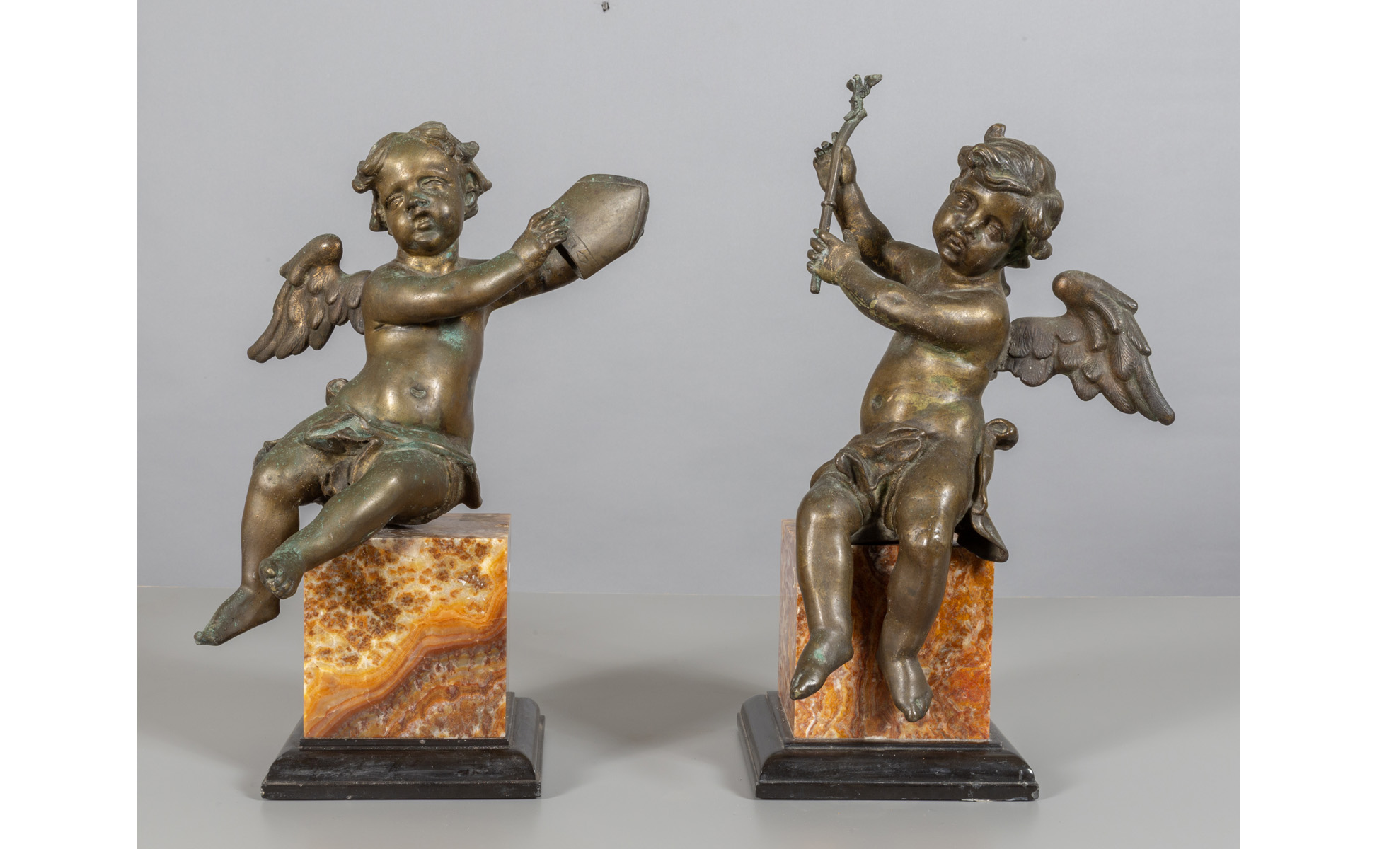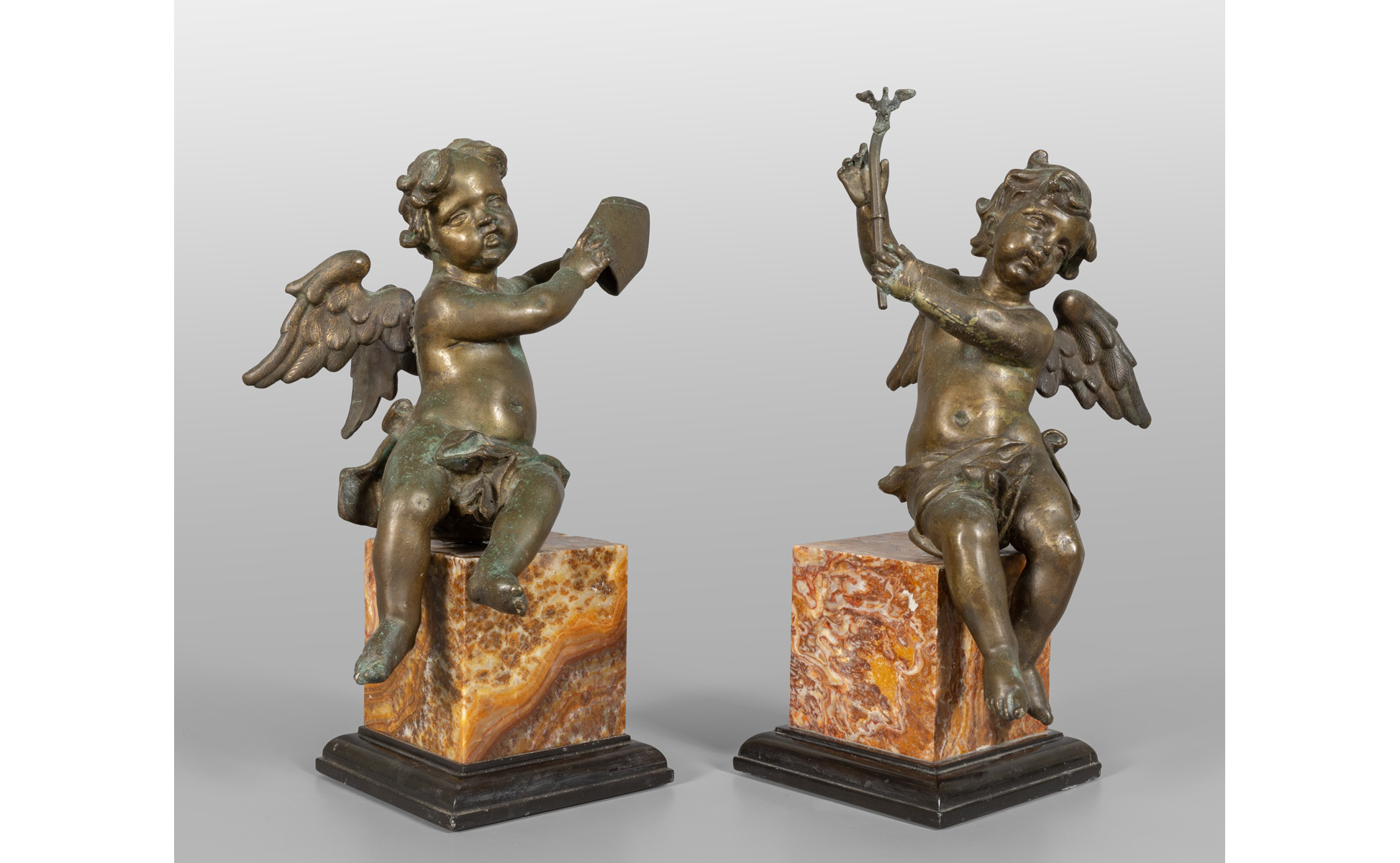 Coppia di angeli in bronzo con base in marmo Roma sec.XVIII