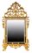Specchiera in legno intagliato e dorato, XVIII secolo cornice rettangolare con fascia specchiata percorsa da corolle applicate, sormontata da un'alta cimasa traforata costituita da volute e cartigli sviluppati con andamento mosso e continuo, centrata da un elemento a vaso stilizzato, tipico della tradizione ornamentale tardobarocca; ai lati, brevi cascatelle accompagnano il profilo della cornice, mentre la parte inferiore si apre in un motivo a cartella con volute contrapposte cm 185x105