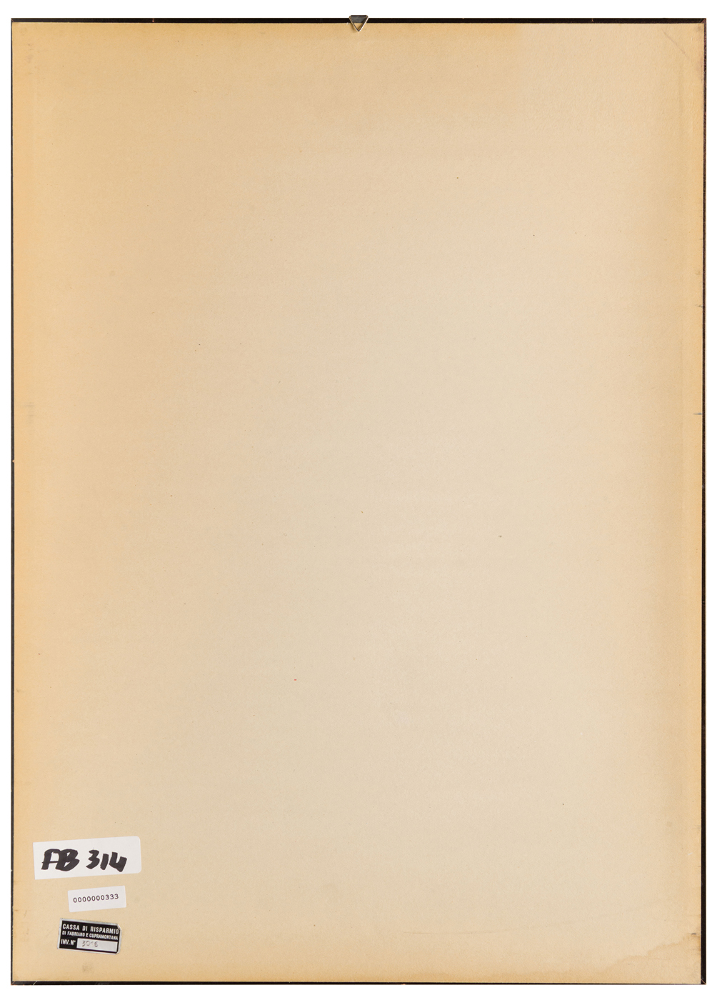 Elementi distintivi: sul verso, etichetta Cassa di Risparmio di Fabriano e Cupramontana con riferimenti di inventario