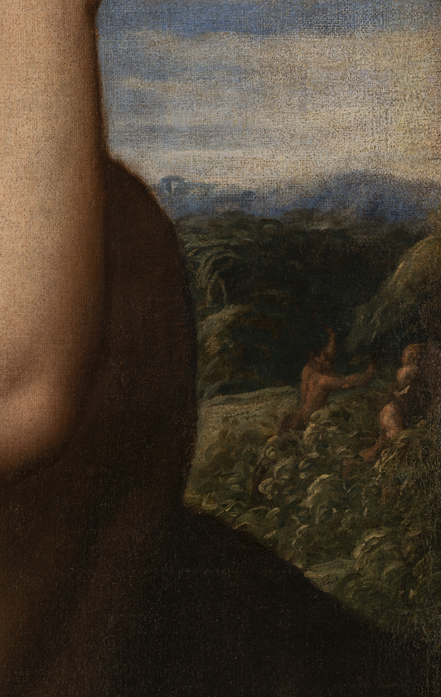 Bibliografia: James E. Scripps, "Catalogue of the Scripps collection of old masters", Detroit, 1889, n. 18, p. 21 ("Titian"); "Detroit Museum of Arts. Handbook", Detroit 1910, n. 18 ("Titian"); "Catalogue of Paintings in the Permanent Collection of the Detroit Institute of Arts", Detroit, 1930, n. 229 (workshop of Titian); D. von Hadeln, "Das Problem der Lavinia Bildnisse", in “Pantheon”, 7, 1931, pp. 82-87, p. 82 ("Damiano Mazza"); J. Zarnowski, "L’atelier de Titien: Girolamo di Tiziano", in “Dawna Sztuka”, I, 1938, pp. 107-129, pp. 122-123. ("Dente"); H. Tietze, "The “Faun and Nymph” in the Boymans Museum in Rotterdam”, in “The Art Quarterly”, 2, 1939, pp. 207-212, p. 212 ("Giovanni Contarini"); E.P. Richardson, "Catalogue of Paintings. Detroit Institute of Arts", Detroit 1944, p. 229 (worshop of Titian); "Paintings in the Detroit Institute of Arts”, Detroit 1965, p. 214 (workshop of Titian); R. Pallucchini, "Tiziano", 2 voll., Firenze 1969, I, p. 214, II, fig. 651 ("Dente"); B. Fredericksen, F. Zeri, “Census of Pre-Nineteenth-Century Italian Paintings in North American Public Collections”, Cambridge, Massachusetts, 1972, pp. 140, 579 (“Tiziano’s follower; or Mazza”); H.E. Wethey, "The paintings of Titian. III. The mythological and historical paintings, London 1975, pp. 216-217 X-28, fig. 228 ("Dente"); Fototeca Antonio Morassi, inv. 27461, 1976 ("Tiziano"); M. Roy Fisher, "Titian’s Assistants during the Late Years", New York-London 1977, pp. 35-39 ("Dente"); Fototeca Zeri, inv. 45033; A. Bristot, "Un artista nella Venezia del secondo Cinquecento: Giovanni Contarini", in “Saggi e memorie di storia dell’arte”, 12, 1980, pp. 31-77, pp. 62-63; S. Claut, "All’ombra di Tiziano. Contributo per Girolamo Denti, in “Antichità viva”, XXV, 1986, 5-6, pp. 16-29, pp. 17, 27 nota 11 ("Dente"); G. Nepi Sciré, "Dente, Girolamo", in “Dizionario Biografico degli Italiani”, XXXVIII, Roma 1990, pp. 788-790 ("Dente", ma rilevando una "qualità stilistica, forse mai più raggiunta dal Dente"); Tagliaferro 2006, p. 47; Giorgio Tagliaferro in Giorgio Tagliaferro e Bernard Aikema con Matteo Mancini e Andrew John Martin , "Le botteghe di Tiziano", Milano, 2009, p. 262, ill. 141 ("Bottega di Tiziano (Girolamo Dente?) 1555-1560"); E. M. Dal Pozzolo, "L’Allegoria della Musica di Simone Peterzano, allievo di Tiziano e maestro di Caravaggio", Firenze, 2012, pp. 1-56, pp. 20, 55, note 63 ("Peterzano"); E. M. Dal Pozzolo, "Il primo Peterzano", in "Venezia Cinquecento", XXII, 43, 2012, pp. 135, 138 (ill.), 140, 173, 182, n. 74 ("Simone Peterzano, Satiro che abbraccia una baccante"); Donati 2016, p. 131, no. K19; P. Plebani, "Peterzano profano", in S. Facchinetti, F. Frangi, P. Plebani, M. C. Rodeschini, a cura di, "Peterzano. Allievo di Tiziano, maestro di Caravaggio", Milano, 2020, p. 37 (ill.), p. 41, n. 8 ("Simone Peterzano ?, Satiro che abbraccia una ninfa"); Giorgio Tagliaferro, "‘Introduction: The Composition of Themes and Variations by Titian and His Workshop’", in Peter Humfrey, a cura di, "Titian: Themes and Variations", Firenze, 2022, pp. 11-35; p. 12 (ill.), pp. 16-17; p. 18-19 (ill. 2-4, 7-8); p. 20 (ill. 9-10); pp. 21-23, 35-36, note 28-30, 33, 39 ("Titian and workshop"); E.M Dal Pozzolo, "Peterzano 'de Titiano': una conferma e una coda", in “Studi Tizianeschi”, vol. XII, 2022, pp. 197-207, 215-216, p. 196 (ill.), p. 197-207, 215-216 (ill. 1, 4)) ("Simone Peterzano"); Giulio Nicola Bono, "Stato di conservazione e intervento di restauro", in “Studi Tizianeschi”, vol. XII, 2022, pp. 208-214, 2017 (ill. 11-20)