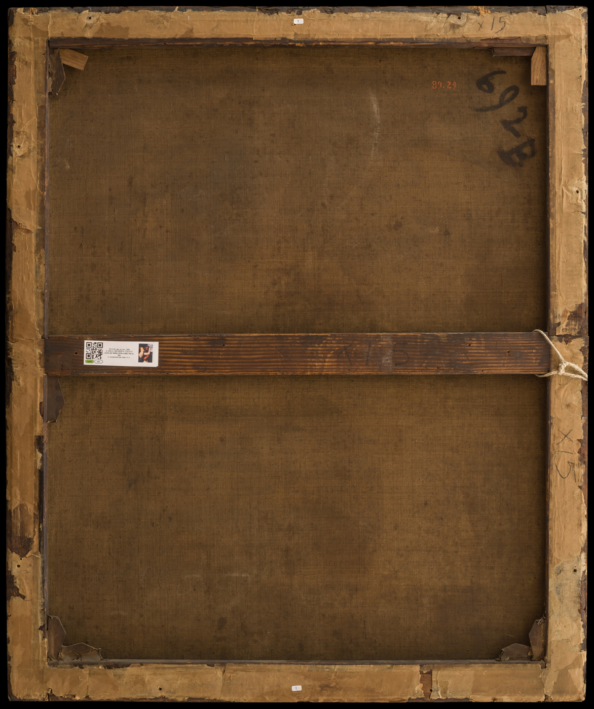 Altre iscrizioni: al verso della tela codici “89. 29”, “692B”, forse in relazione ad un passaggio d’asta; a matita “X15” sul telaio