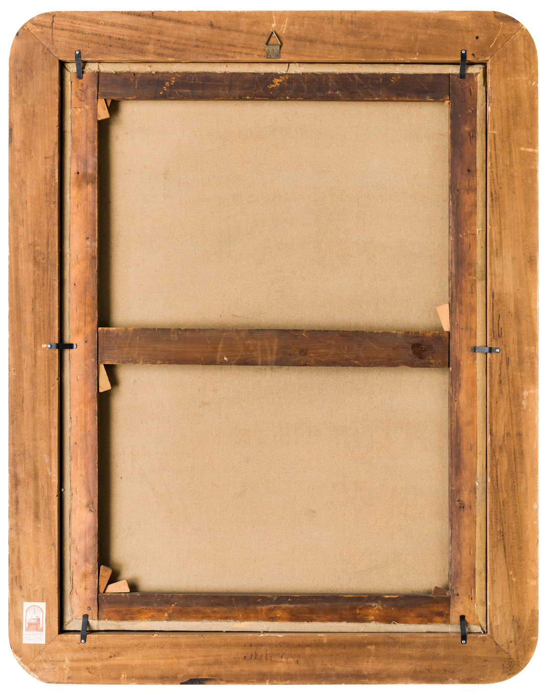 Elementi distintivi: sul verso, etichetta della corniceria Salvetti, Milano