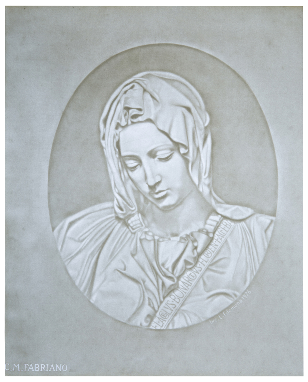 Luigi Filomena (II metà del XX secolo), per Cartiere Miliani, Fabriano Il volto della Vergine, dalla Pietà di Michelangelo, 1976