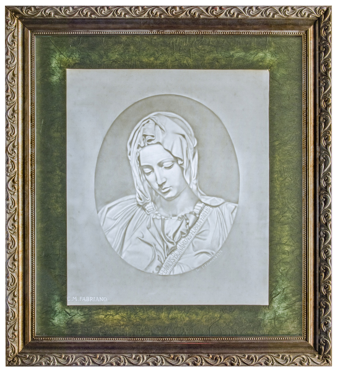 In asta, un esemplare di filigrana artistica in chiaroscuro, realizzata da Luigi Filomena, per la storica Cartiera Miliani, di Fabriano, sul modello celeberrimo della "Pietà" di Michelangelo. Come ricorda Annarita Librari, figlia dell'incisore in filigrana Franco Librari, "Con Giuseppe Miliani (1816 - 1890), nipote di Pietro (1744 - 1817), fondatore della ditta Miliani, la cartiera si ingrandisce, la carta da disegno si afferma come la migliore, tanto che alla esposizione di Londra nel 1851 viene premiata, e la carta valori comincia ad essere la specialità della fabbrica fabrianese. Alla morte di Giuseppe la cartiera era già un grande complesso, ma sarà il figlio Giambattista (1856-1937) ad operare l’effettiva trasformazione da azienda artigianale ad industriale (...). Giambattista alle conoscenze tecniche unisce un’ampia visione dell’organizzazione industriale grazie ai frequenti viaggi che, fin da giovanissimo, compie in diverse nazioni europee e in Nord America. Nel 1889 riceve la Legion d’onore per aver presentato, all’esposizione di Parigi, le migliori filigrane per i biglietti di banca. Per le filigrane di Fabriano, ancor prima del riconoscimento parigino, esisteva un vero e proprio entusiasmo. Nel 1886 Ernst Kirchner di Francoforte sul Meno scrive: “Le vostre carte filigrane sono le più belle che io abbia mai veduto fino ad ora. Da quando posseggo questi veramente artistici fogli non oso più nemmeno guardare gli stessi prodotti della Germania. I ritratti, come pure i dettagli che li ornano sono di una finezza ammirabile, perfetta e formano ora il punto essenziale di questa modesta collezione che io curo con molto amor proprio”. Nel settore della Filigrana artistica in chiaro-scuro per banconote Giambattista, in un primo momento, per l’incisione su cera si avvalse del prof. Bianchi di Roma, medaglista dei Sacri Palazzi Apostolici, che direttamente da Roma inviava a Fabriano le cere commissionate. Successivamente, la sua lungimiranza e previdenza lo spinsero a dotare l’Officina Filigrane delle cartiere di Fabriano della sezione di incisione su cera, dove destinò giovani e abili artisti che riuscirono a soddisfare appieno le esigenze aziendali. Capostipite di questa scuola fu Serafino Cilotti (1868-1943), che realizzò opere di notevole impatto artistico, da considerare come una nuova forma di espressione d’arte figurativa su cera, Angelo Bellocchi (1880-1939) e Virgilio Brozzesi (1869-1946). Allievi di Cilotti possono considerarsi Aldo Frezzi (1885-1972), (...) Eraldo Librari (1907-1988) e Luigi Filomena. ( Annarita Librari, "Cera una volta... la Filigrana Artistica in chiaroscuro"). La storia della cartiera Miliani è stata ricostruita da Bruno Bravetti, nella monografia “Giambattista Miliani”, Affinità Elettive, 2010