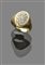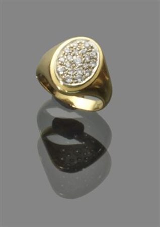 ANELLO Anello in oro giallo con pavé ovale di diamanti taglio brillante per complessivi ct 0,35 ca Peso gr 4,60 Yellow gold oval ring with pavé diamonds totaling about 0.35 ct Weight 4.60 gr