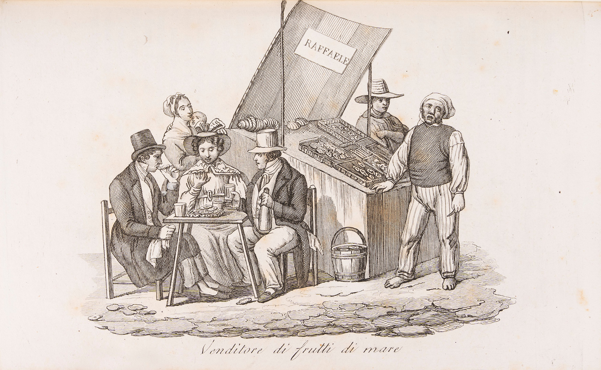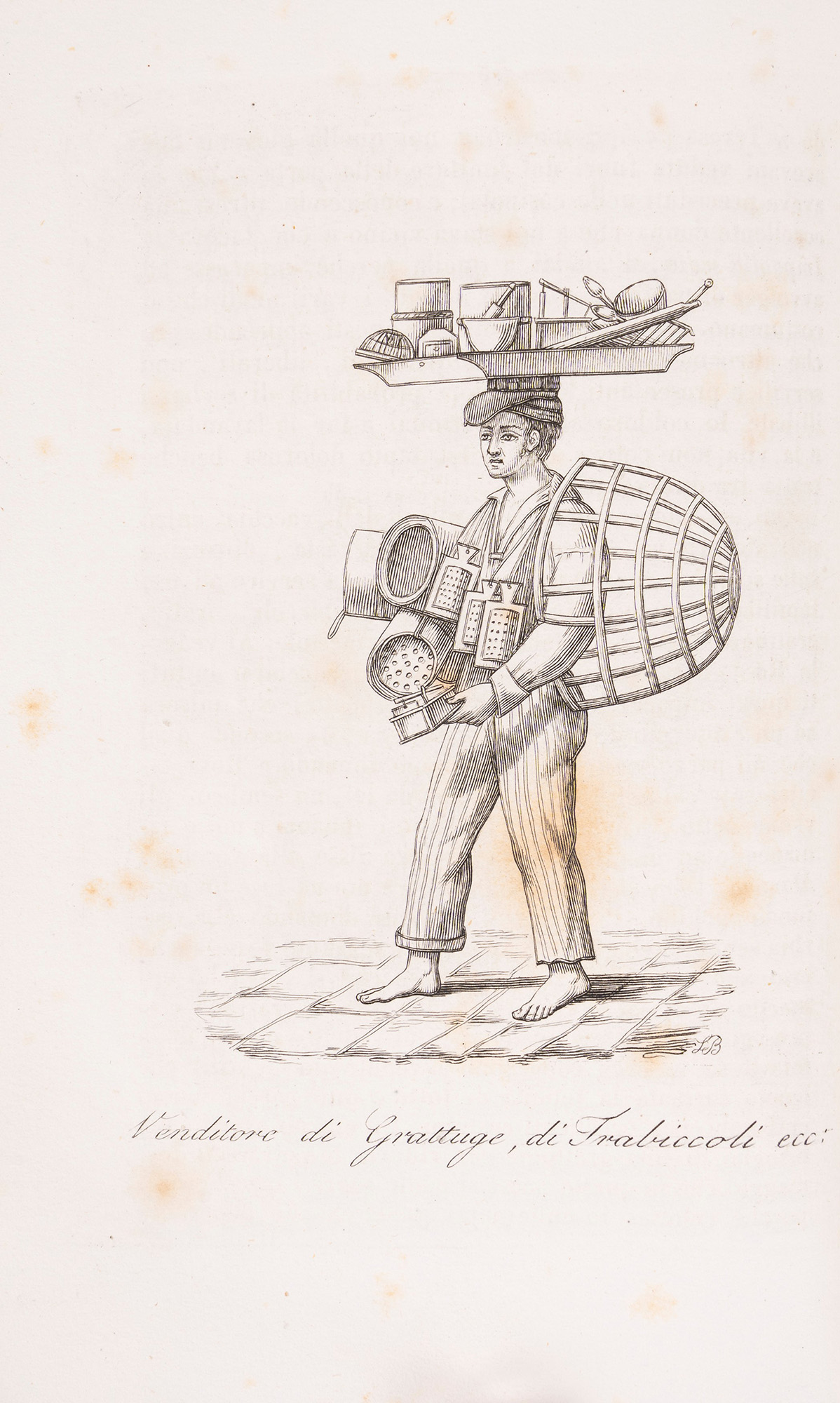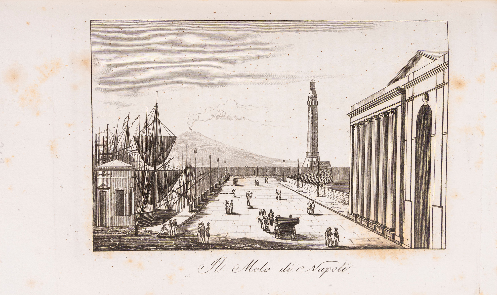 Napoli, Cannavacciuoli, 1847. In 8°. Con 49 bellissime tavole incise di personaggi e vedute napoletane, lievi fioriture, legatura coeva in chagrin, impressioni a secco al piatto, titolo in oro al dorso, lievissimi segni del tempo. Ex libris al contropiatto.