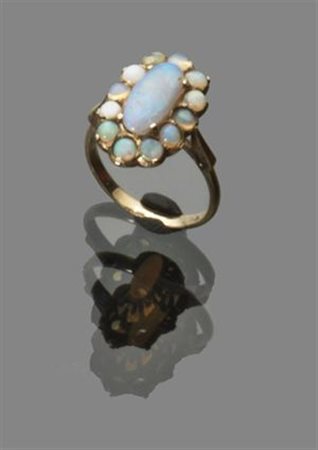 ANELLO Anello in oro giallo basso titolo con opali Peso gr 2,80 Yellow gold ring with opals low kt. Weight 2.80 gr
