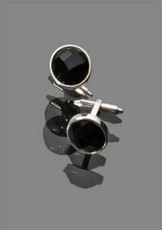 COPPIA DI GEMELLI Coppia gemelli in oro bianco e onice sfaccettato Peso gr...