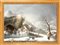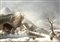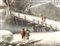 Winter landscape with a bridge, house, cave, and travelers Oil on canvas cm. 98x136,5. Framed Private collection, Marche.