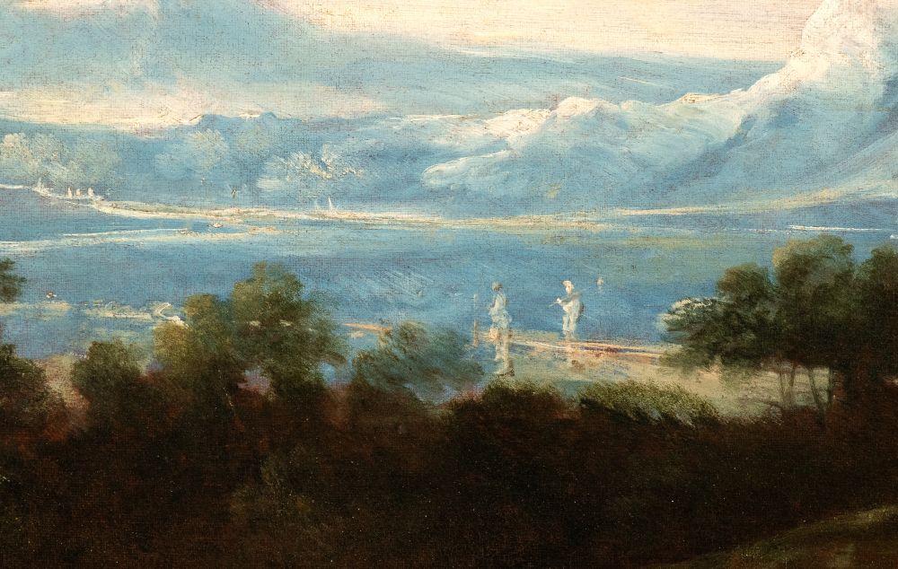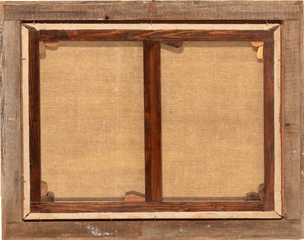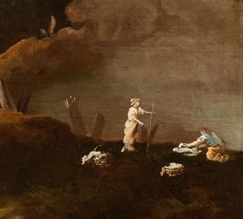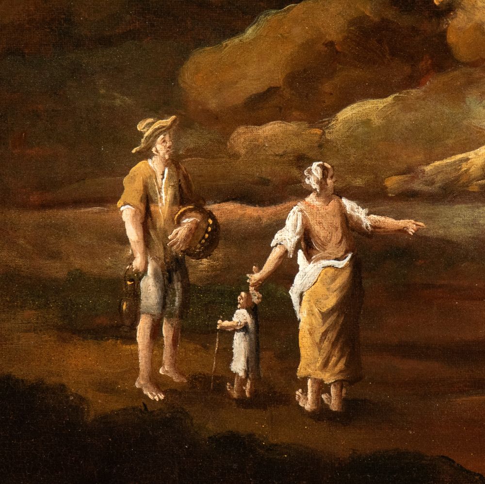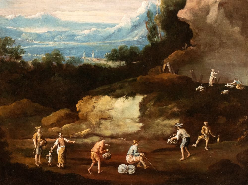 Landscape with a group of peasants Oil on canvas cm. 80x105. Framed Private collection, Marche.