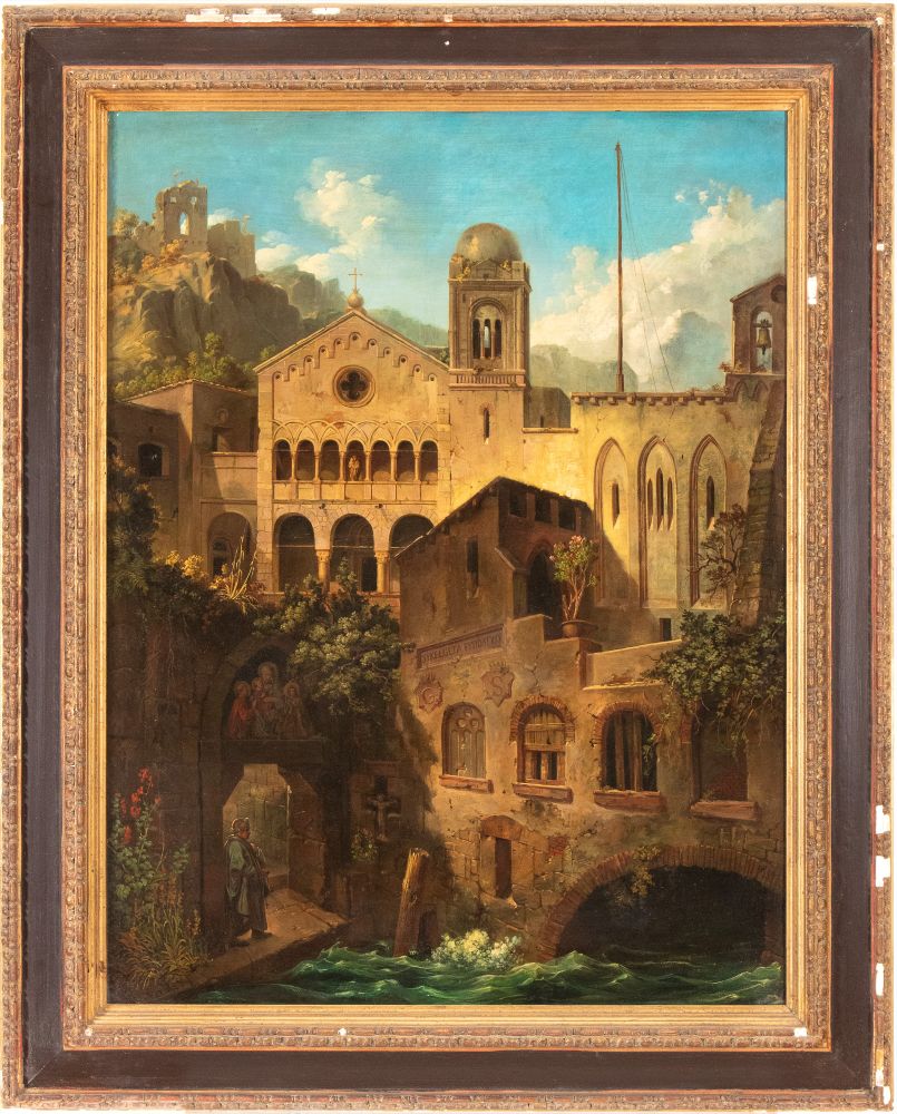 Architectural caprice with the Duomo of Amalfi Oil on canvas cm. 92x70. Framed The painting bears a brush signature at the lower left: "PEZOLT". Private collection, Campania.