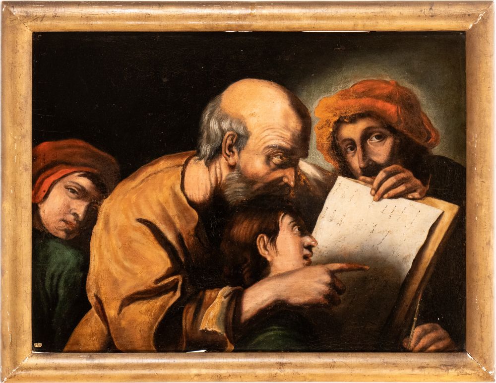 The Math class Oil on panel cm. 39x53. Framed