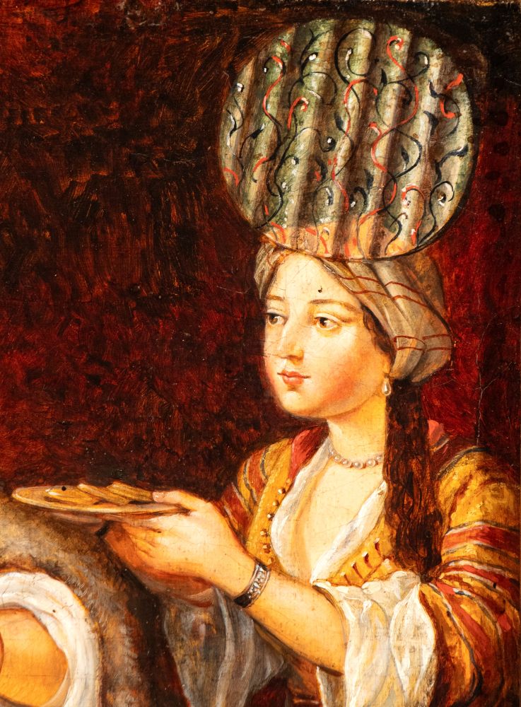 Turkish Coffee Oil on canvas cm. 45x42,5. Framed The painting is a replica of the work Enjoying Coffee, unattributed, preserved in the Orientalist collection of the Pera Museum, Istanbul.
