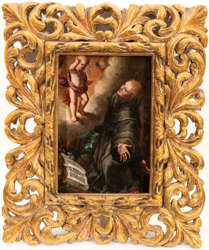 Mystic Vision of Saint Antonio da Padova Oil on copper cm. 17,5x12. Framed