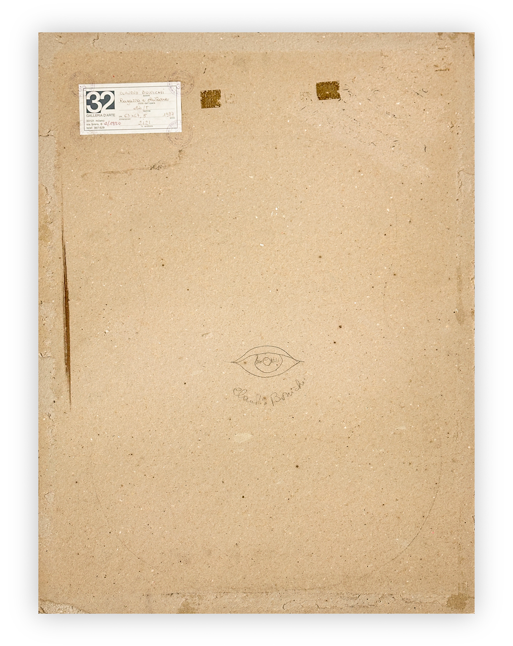 Etichetta e timbri della Galleria d'Arte 32 (MI) al retro