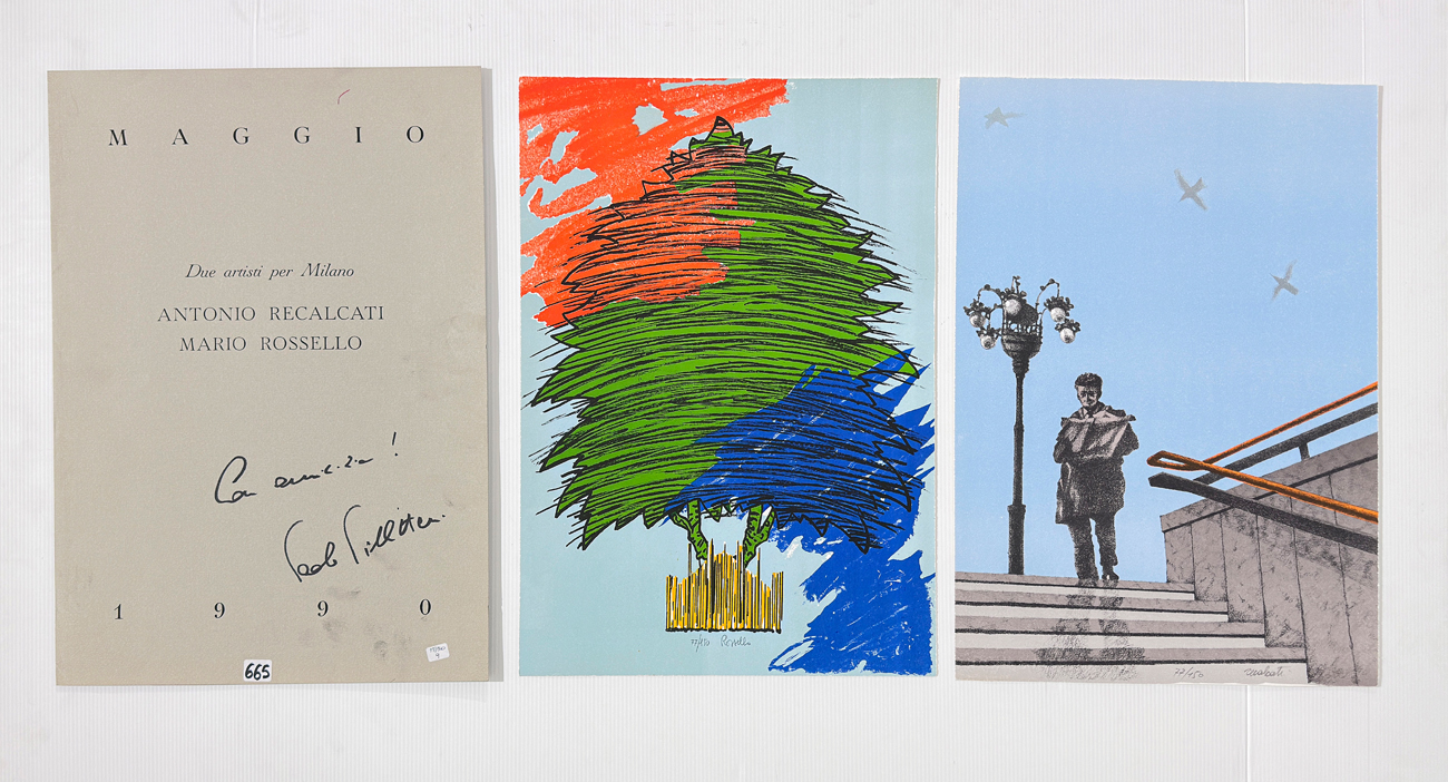 Lot 194 | AUTORI VARI (ANTONIO RECALCATI E MARIO ROSSELLO) - Due artisti per Milano. Antonio Recalcati Mario Rossello, 1990