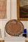 Segni d’usoin legno di forma circolare a patina chiara con simboli in rilievo.
