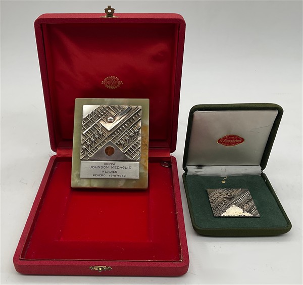 Lotto composto da due medaglie edite da Johnson su disegni di Arnaldo Pomodoro