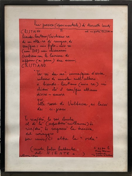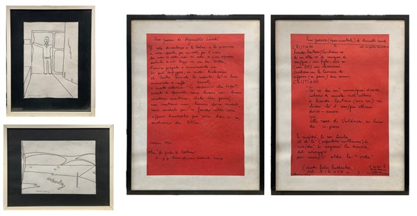 Lotto composto da due pennarelli su carta di soggetto diverso e due poesie su carta rossa