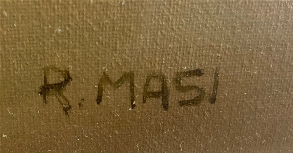 Roberto Masi "Pescatori" 1988 olio su tela cm 60x80 firmato in basso a destra e